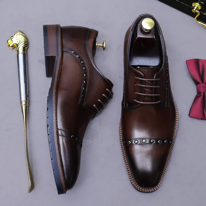Giày Da Nam Chất Liệu Da Bò Mũi Tròn