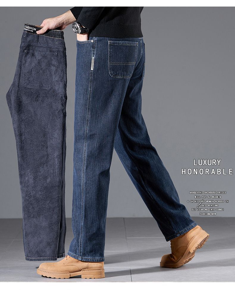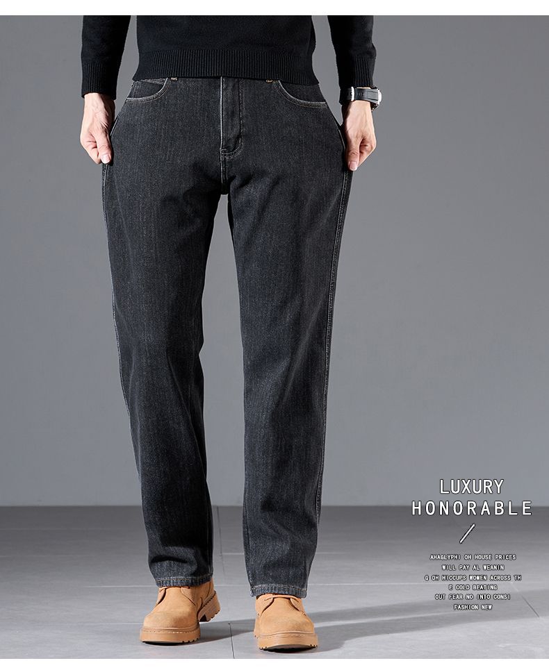 Chiếc quần jeans nam thiết kế dáng suông rộng rãi, phù hợp cho mùa thu đông. Bên trong quần được lót một lớp lông mềm mại giữ ấm tốt. Chất vải jeans dày dặn, màu xám đen dễ dàng phối đồ. Kiểu dáng thẳng và thoải mái, thích hợp cho nhiều hoạt động hằng ngày. Có thể mặc đi làm, đi chơi hay dạo phố. Giặt như quần jeans thông thường với nước lạnh. | Tên sản phẩm: Quần Nam Chất Liệu Jean Bò Big Size Ngoại Cỡ Dày Ấm Hàng Mùa Xuân Thu Đông Trung Niên - Thời Trang Nam | Mã sản phẩm: B8653 - Giá: 970.000đ | Mã nhà sản xuất: GUDNG-G03Hình ảnh sản phẩm