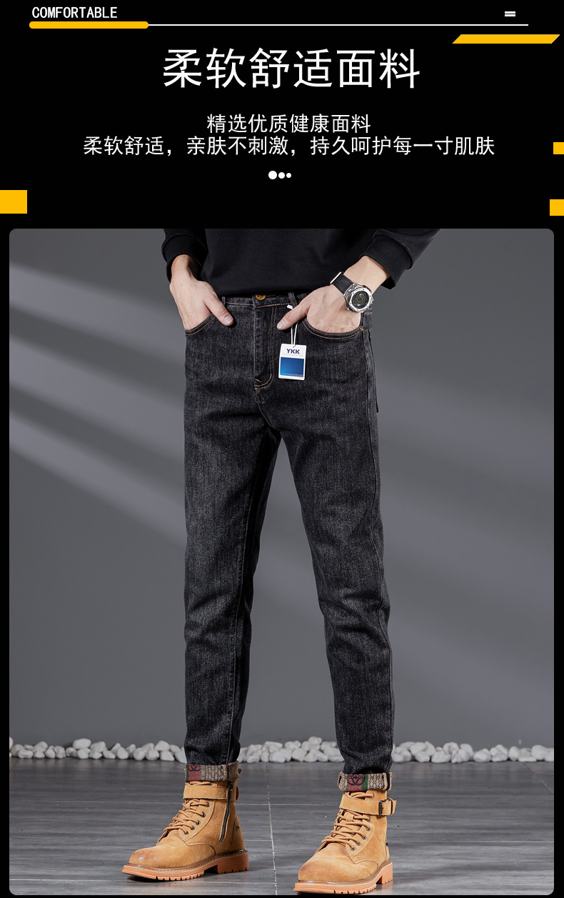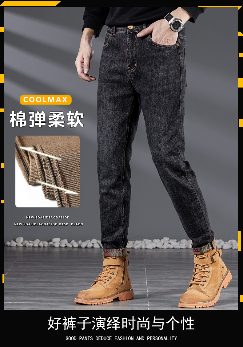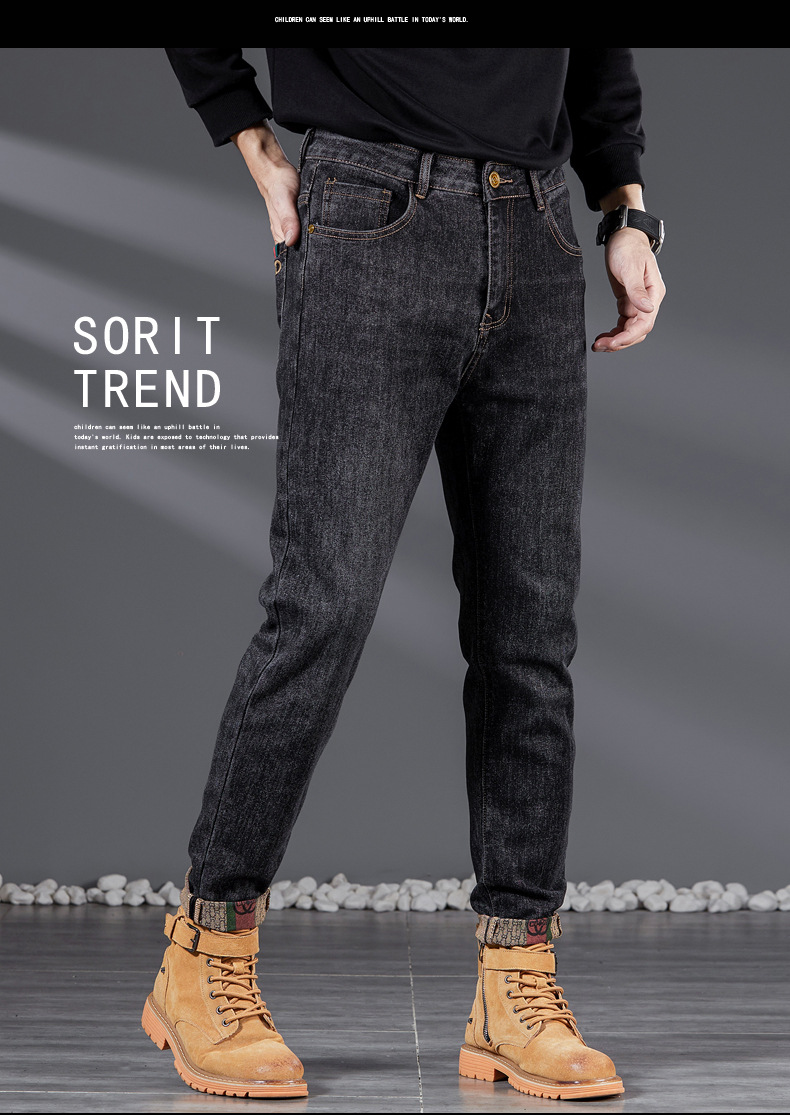 Chiếc quần jeans nam này có màu đen xám, kiểu dáng ôm vừa vặn và phần ống nhỏ dần về phía dưới. Chất vải co giãn nhẹ mang lại cảm giác thoải mái, dễ dàng vận động. Đây là mẫu quần phù hợp cho thời tiết mát mẻ. Bạn có thể mặc đi làm, đi chơi hoặc phối cùng nhiều loại áo khác nhau. Sản phẩm giữ form dáng chuẩn sau nhiều lần giặt. | Tên sản phẩm: Quần Nam Chất Liệu Jean Bò Dáng Ôm Hàng Mùa Xuân Thu Đông - Thời Trang Nam | Mã sản phẩm: A8005 - Giá: 950.000đ | Mã nhà sản xuất: WATYM-G03Hình ảnh sản phẩm