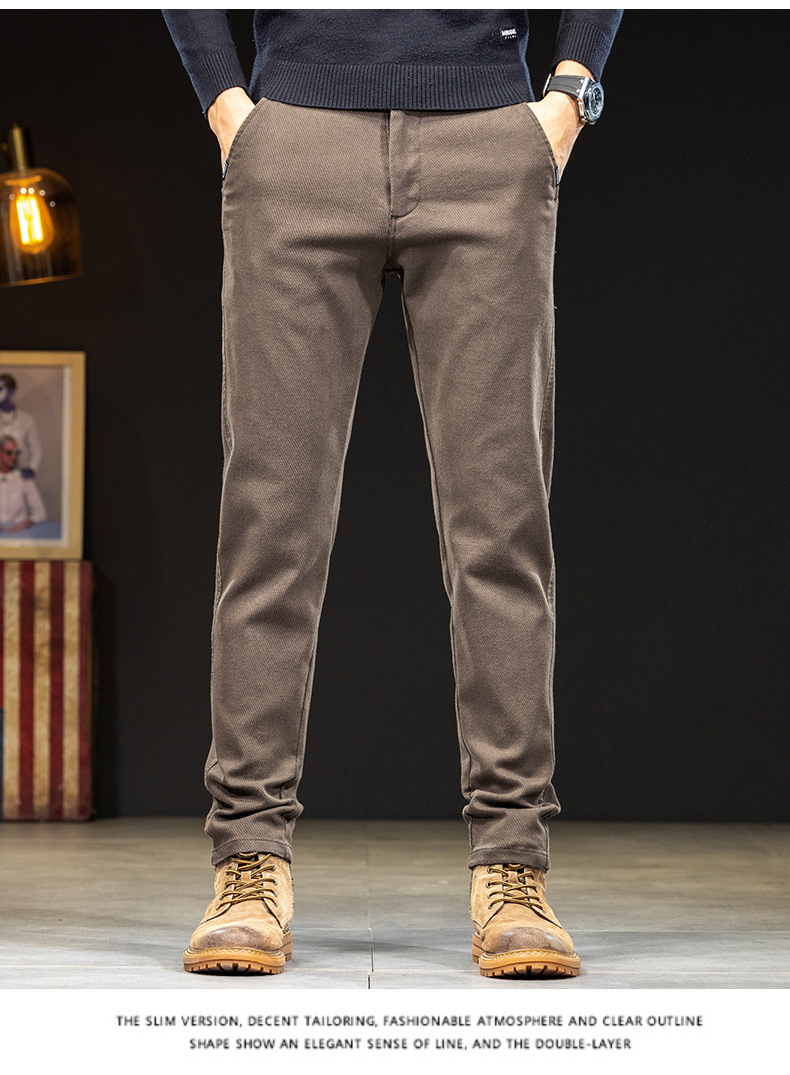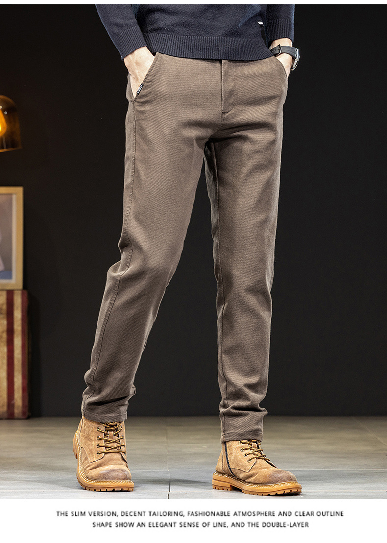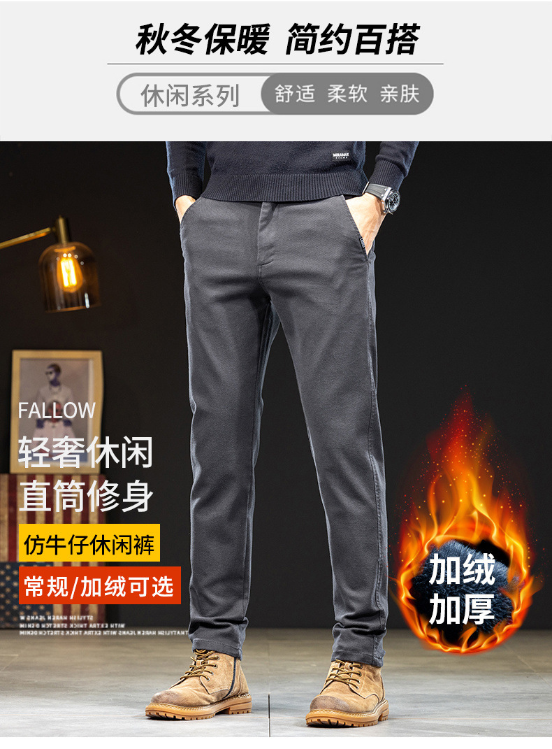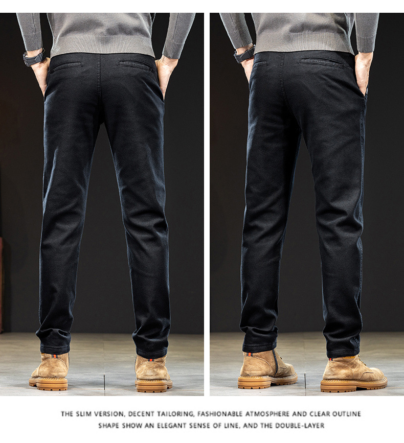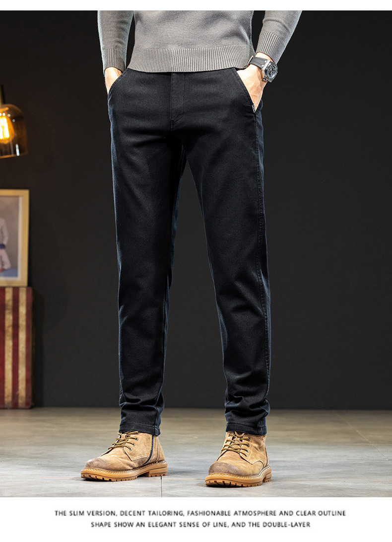 Chiếc quần dài nam này có kiểu dáng thẳng ôn hờ, phù hợp cho cả công sở và dạo phố. Chất vải giả jeans mang đến vẻ ngoại hình năng động nhưng vẫn rất thoải mái. Bên trong được lót một lớp lông mỏng, giữ ấm nhẹ nhàng trong tiết trời thu đông. Thiết kế này dễ dàng kết hợp với nhiều loại áo khác nhau. Bạn có thể mặc hằng ngày và giặt máy như bình thường. | Tên sản phẩm: Quần Nam Chất Liệu Jean Bò Dáng Ôm Hàng Mùa Xuân Thu Đông - Thời Trang Nam | Mã sản phẩm: B6971 - Giá: 880.000đ | Mã nhà sản xuất: QUDL-G03Hình ảnh sản phẩm