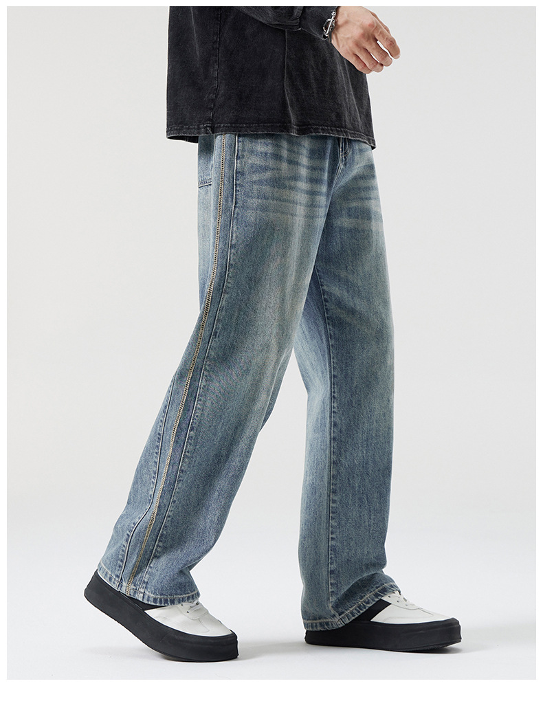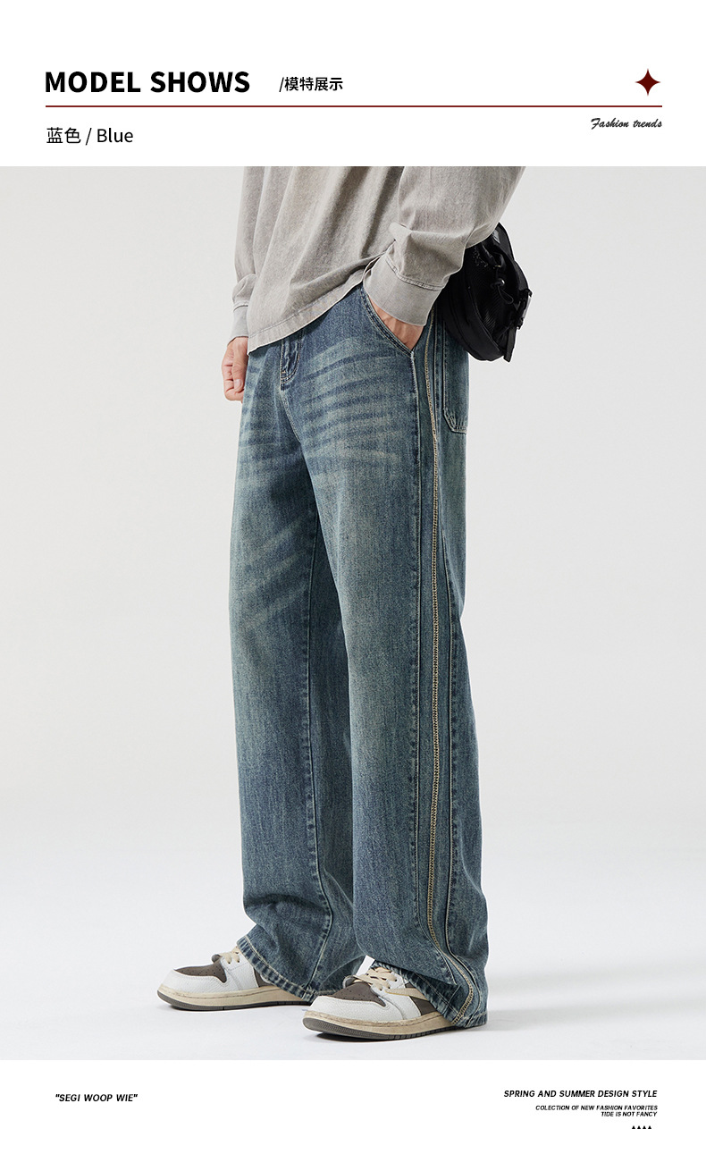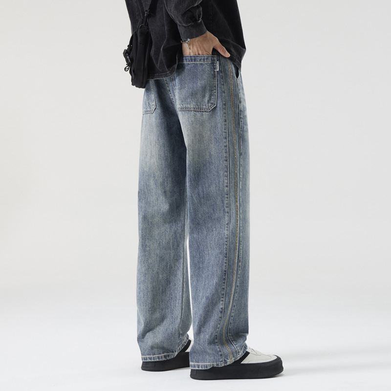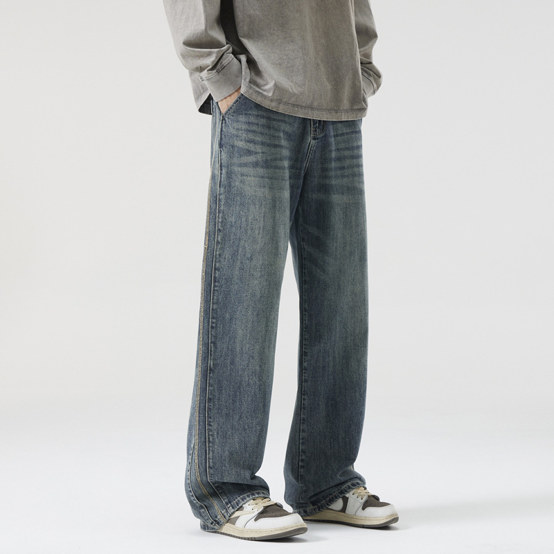 Chiếc quần jeans này mang phong cách thoải mái dễ mặc cho mọi mùa trong năm. Thiết kế ống suông rộng rãi từ đùi đến gấu quần, tạo cảm giác dễ chịu khi mặc. Chất liệu denim co giãn nhẹ giúp bạn cử động linh hoạt. Sản phẩm phù hợp để phối cùng áo thun, áo sơ mi hay áo hoodie cho những dịp sinh hoạt thường ngày. Bạn có thể giặt cùng với các loại quần áo màu tương tự để giữ nguyên vẻ đẹp của quần. | Tên sản phẩm: Quần Nam Chất Liệu Jean Bò Hàng Mùa Xuân Thu Đông Phục Cổ Cổ Điển - Thời Trang Nam | Mã sản phẩm: B6954 - Giá: 880.000đ | Mã nhà sản xuất: QUDL-G03Hình ảnh sản phẩm
