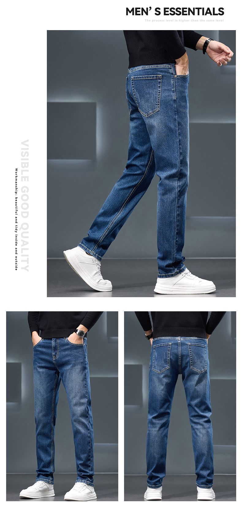 Chiếc quần jeans này được thiết kế cho mùa thu đông, có khả năng co giãn nhẹ nhờ pha thêm sợi bông mềm mại. Kiểu dáng ống thẳng mang đến vẻ ngoài lịch sự phù hợp cho công sở, đồng thời vẫn đảm bảo sự thoải mái trong những dịp sinh hoạt thường ngày. Bạn có thể dễ dàng phối cùng áo sơ mi hoặc áo thun để tạo nên những bộ trang phục đa dạng. Sản phẩm dễ dàng giặt và bảo quản như các loại quần jeans thông thường khác. | Tên sản phẩm: Quần Nam Chất Liệu Vải Bông Hàng Mùa Xuân Thu Đông - Thời Trang Nam | Mã sản phẩm: B8413 - Giá: 950.000đ | Mã nhà sản xuất: GUDNG-G03Hình ảnh sản phẩm