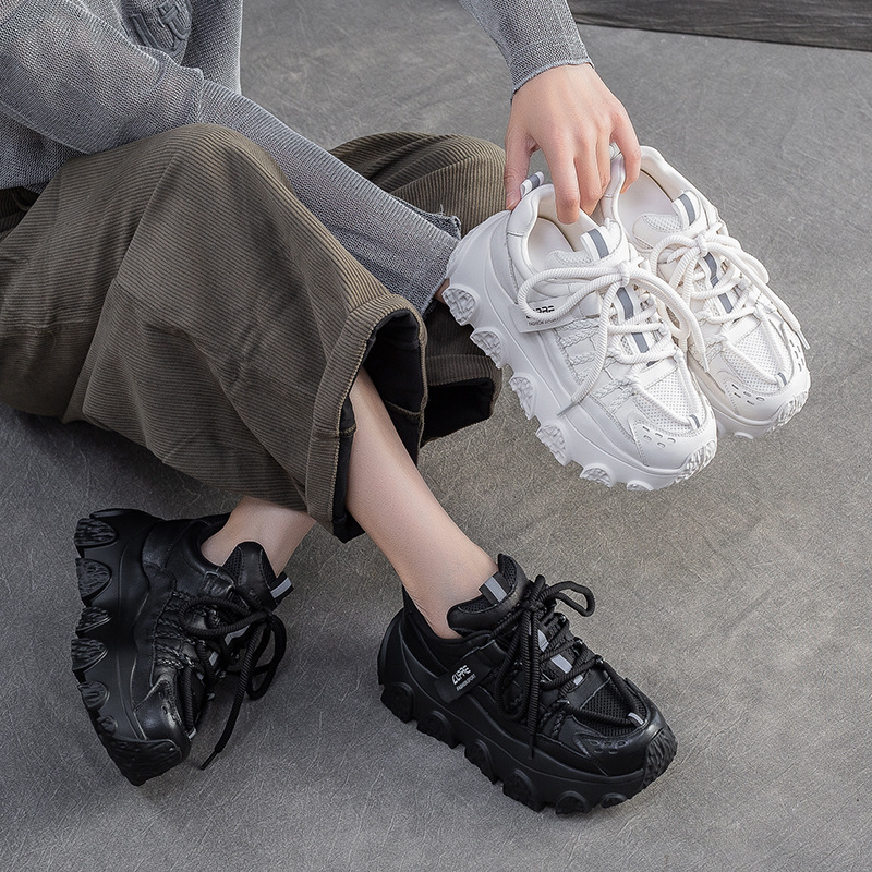 Giày Thể Thao Tăng Chiều Cao Nữ Chất Liệu Da Bò Tăng Chiều Cao Hàng Mùa Xuân Thu Đông