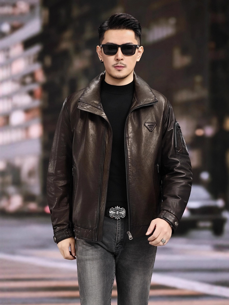 Áo Da Nam Chất Liệu Da Bò Kín Cổ