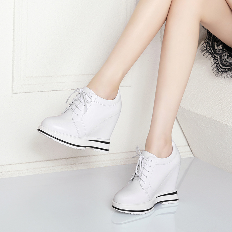 Giày Thể Thao Nữ Chất Liệu Da Bò Tăng Chiều Cao Đế Cao Hàng Mùa Xuân Thu Đông
