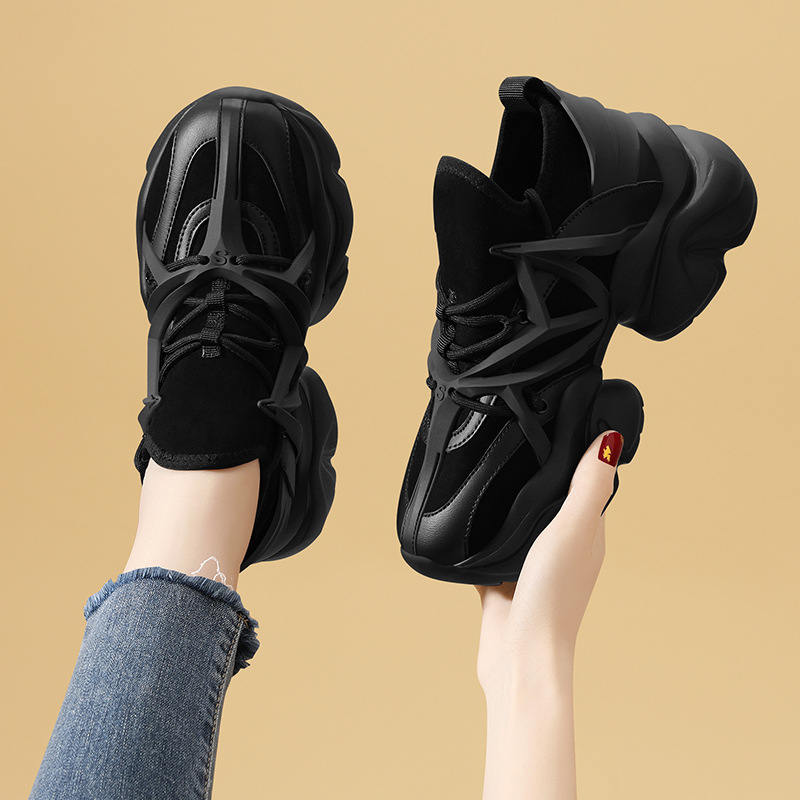 Giày Thể Thao Tăng Chiều Cao Nữ Chất Liệu Da Bò Tăng Chiều Cao Hàng Mùa Xuân Thu Đông