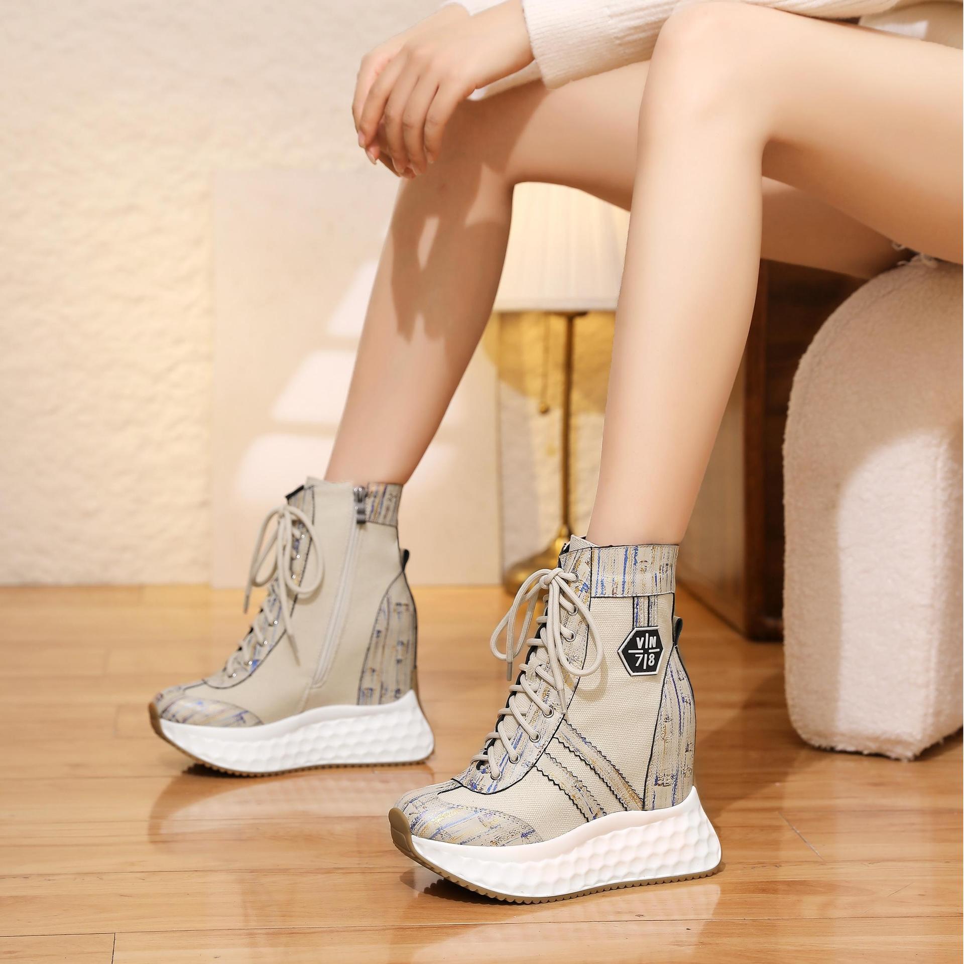 Giày Thể Thao Tăng Chiều Cao Nữ Tăng Chiều Cao Hàng Mùa Xuân Thu Đông Phục Cổ Cổ Điển