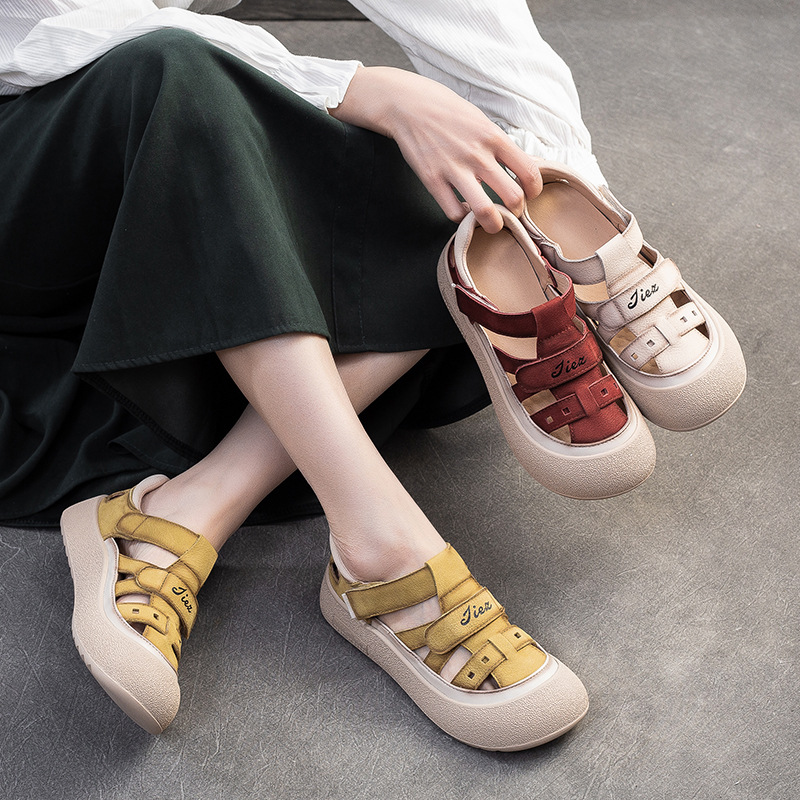 Giày Dép Sandal Nữ Chất Liệu Da Bò Thoáng Khí Hàng Mùa Hè Phục Cổ Cổ Điển