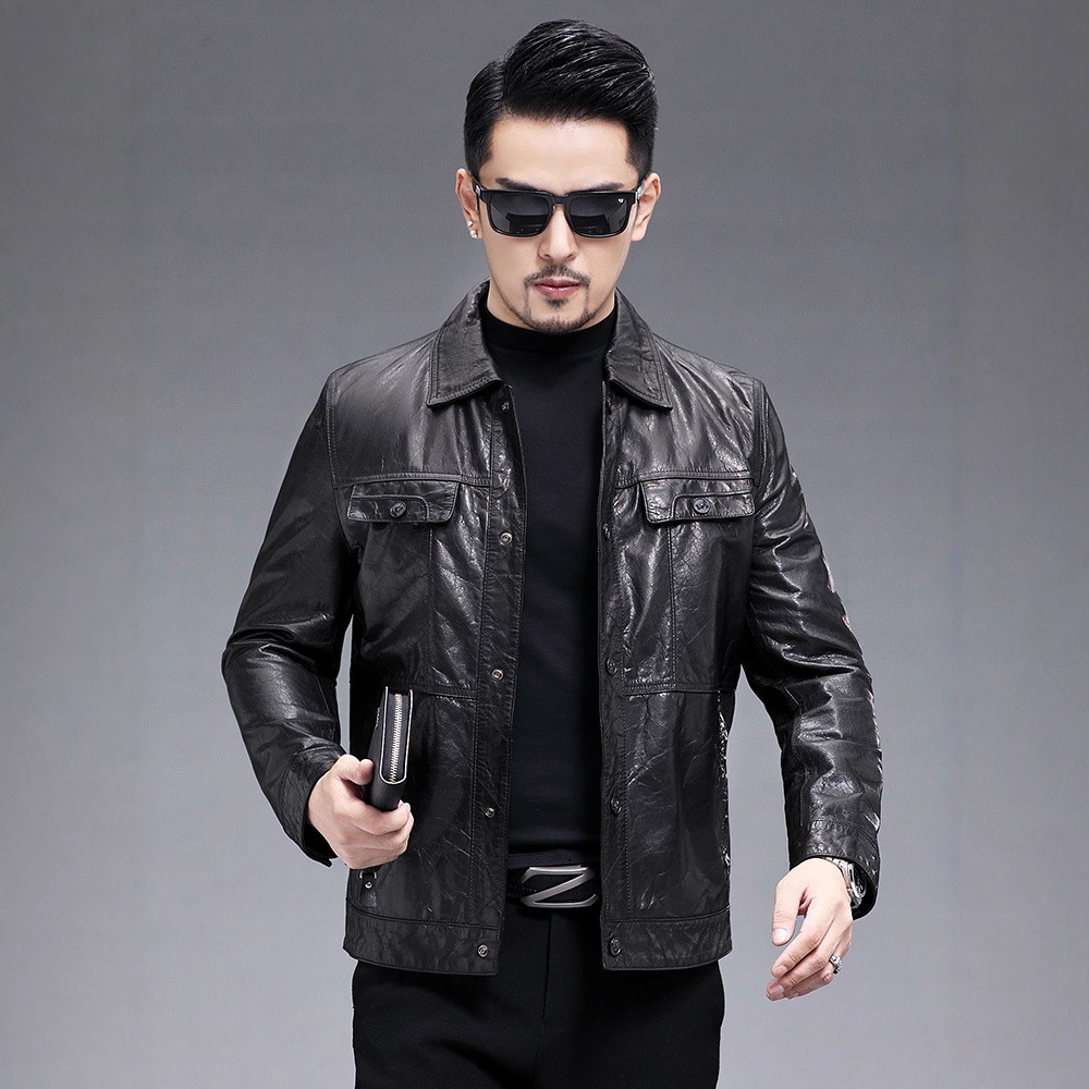 Áo Da Nam Chất Liệu Da Bò Kín Cổ