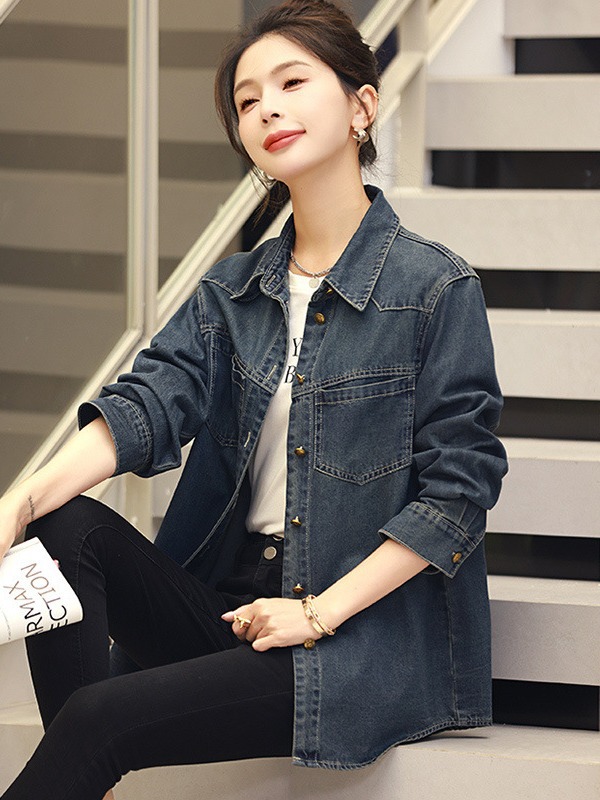 Áo Khoác Nữ Chất Liệu Jean Bò Kín Cổ Hàng Mùa Xuân Thu Đông Phong Cách Hàn Quốc