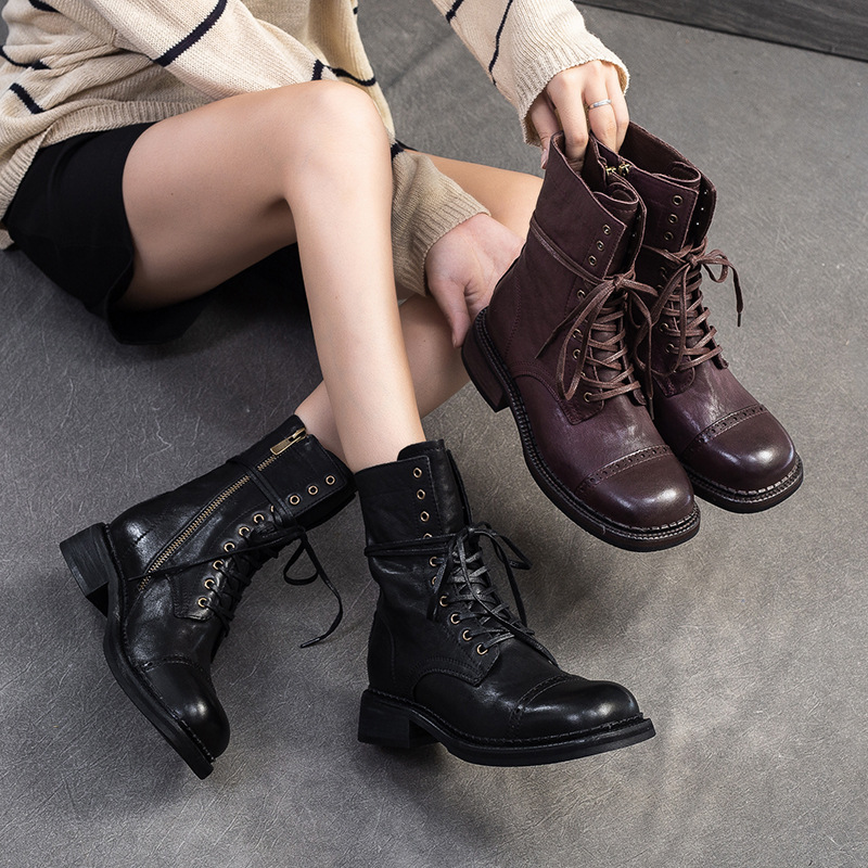 Giày Boot Martin Nữ Hàng Mùa Xuân Thu Đông Phục Cổ Cổ Điển