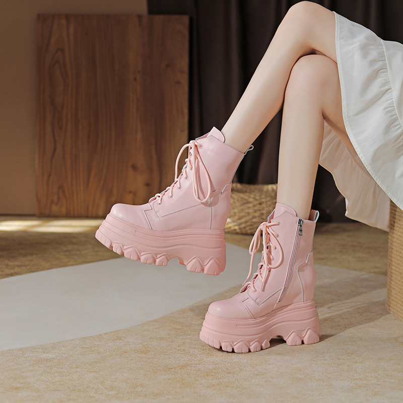 Boot Cổ Thấp Nữ Chất Liệu Da Bò Cao 12cm Tăng Chiều Cao Đế Cao