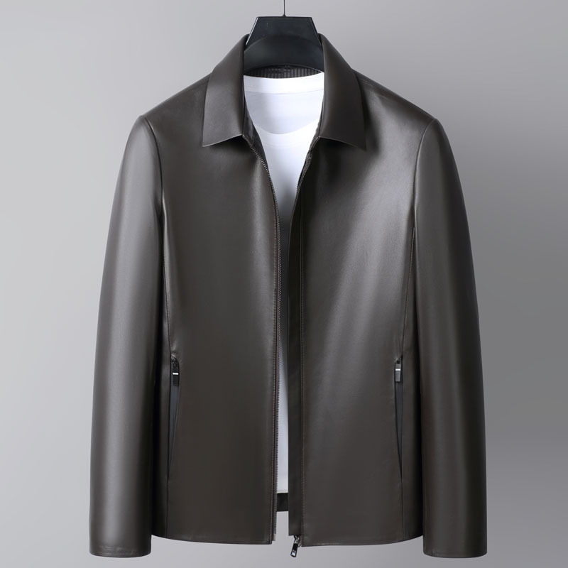 Áo Da Nam Chất Liệu Da Bò Kín Cổ Hàng Mùa Xuân Thu Đông Trung Niên