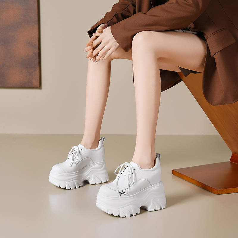 Giày Thể Thao Tăng Chiều Cao Nữ Chất Liệu Da Bò Đế Cao Hàng Mùa Xuân Thu Đông Phục Cổ Cổ Điển