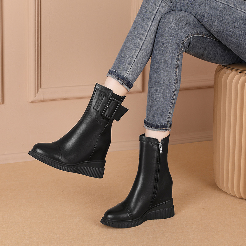 Boot Cổ Thấp Nữ Cao 10cm Tăng Chiều Cao Đế Xuồng Đế Cao Hàng Mùa Xuân Thu Đông