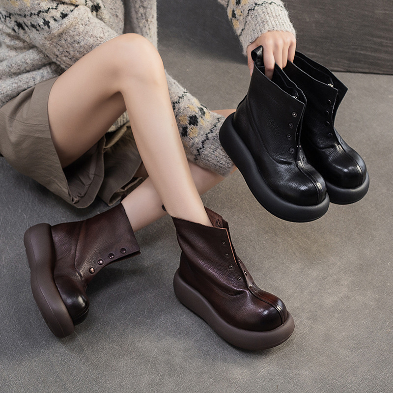 Giày Boot Cổ Thấp Nữ Chất Liệu Da Bò Hàng Mùa Xuân Thu Đông Phục Cổ Cổ Điển