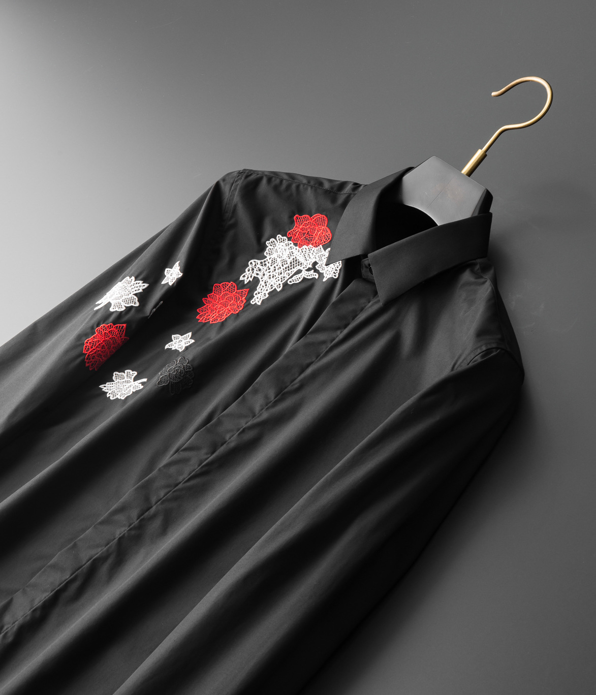 Áo Sơ Mi Nam Dài Tay Thêu Họa Tiết Hoa