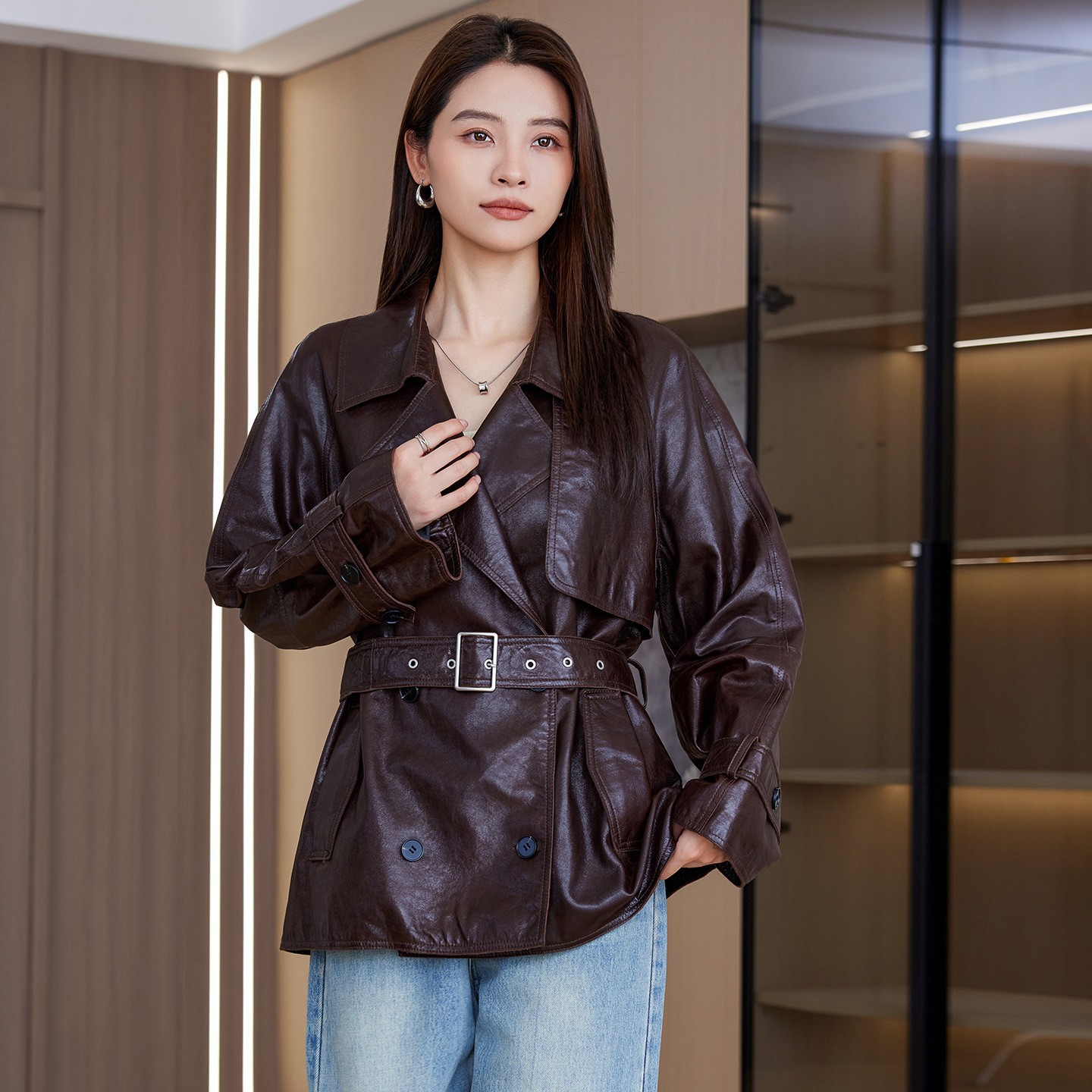 Áo Da Nữ Chất Liệu Da Bò Hàng Mùa Xuân Thu Đông Phục Cổ Cổ Điển