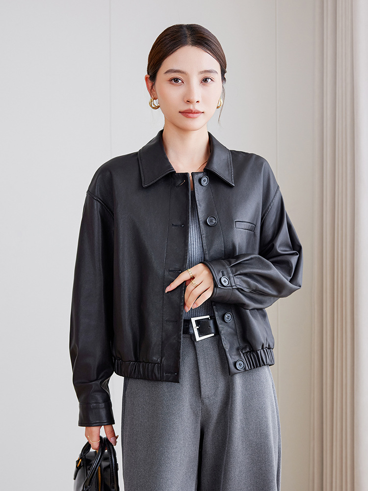 Áo Da Nữ Chất Liệu Da Bò Hàng Mùa Xuân Thu Đông Phong Cách Hàn Quốc