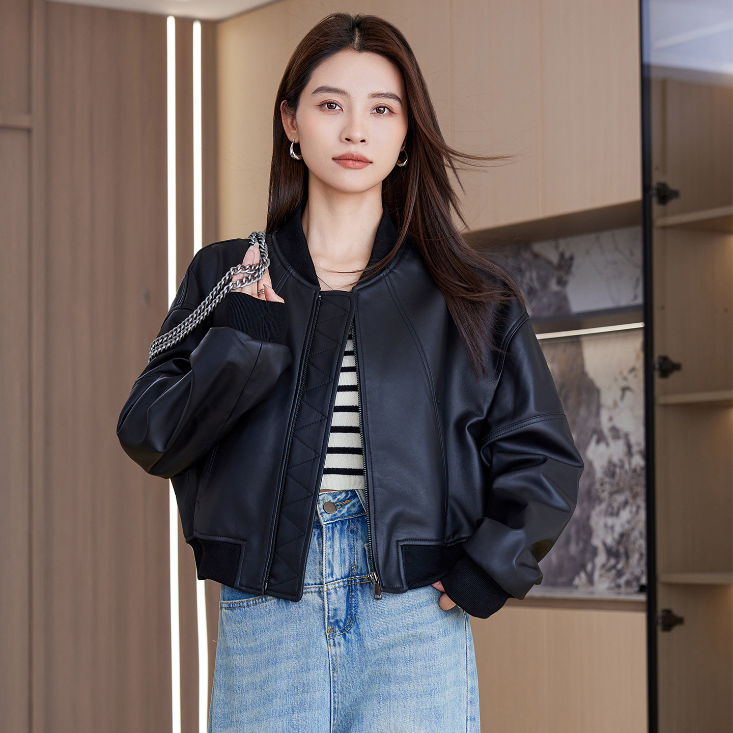 Áo Da Nữ Chất Liệu Da Bò Hàng Mùa Xuân Thu Đông Phong Cách Hàn Quốc