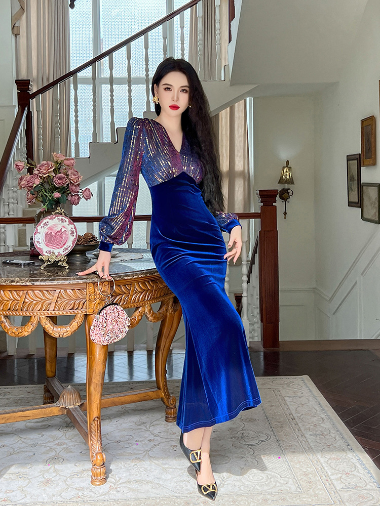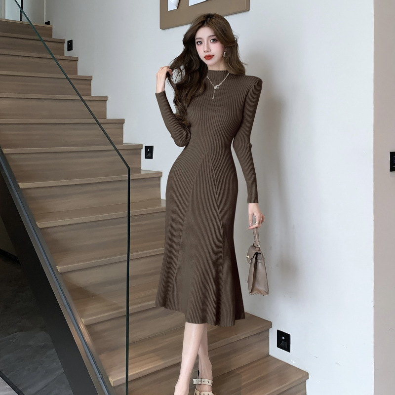 Váy Đầm Liền Thân Nữ Kiểu Đuôi Cá Cổ Chữ V Hàng Mùa Xuân Thu Đông
