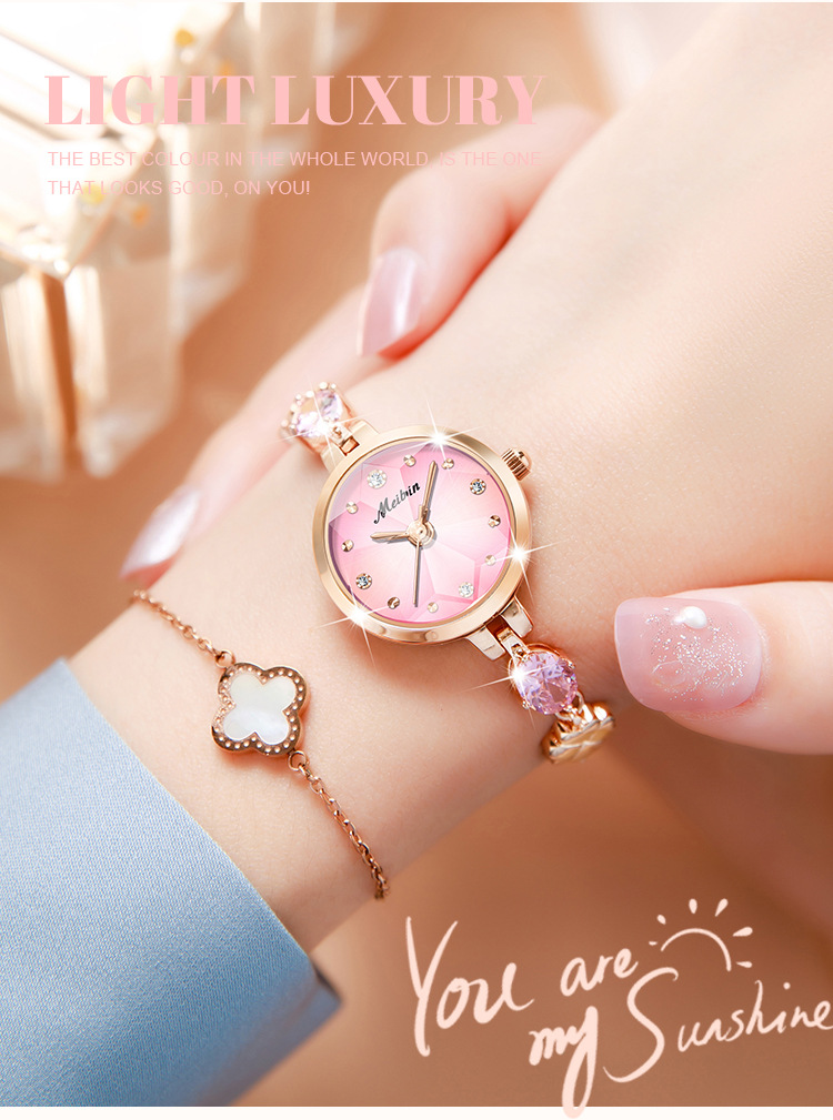 Chiếc đồng hồ dạng vòng tay này có thiết kế thanh mảnh, kết hợp linh hoạt giữa mặt đồng hồ nhỏ xinh và dây đeo dạng lắc tay. Sản phẩm sử dụng bộ máy pin, hiển thị thời gian chính xác và có khả năng chống nước cơ bản. Kiểu dáng thời thượng, dễ dàng phối hợp với nhiều trang phục khác nhau. Bạn chỉ cần đeo nó vào cổ tay như một món trang sức thông thường, điều chỉnh độ rộng của dây cho vừa vặn. | Tên sản phẩm: Trang Sức Phụ Kiện Nữ Chống Nước Lắc Tay Vòng Tay Máy Pin, Máy Thạch Anh - Đồng Hồ Phụ Kiện Nữ | Mã sản phẩm: G4219 - Giá: 1.000.000đ | Mã nhà sản xuất: ZHDTC-G03Hình ảnh sản phẩm