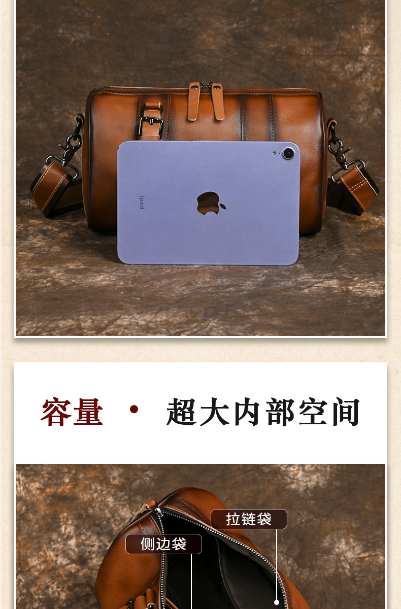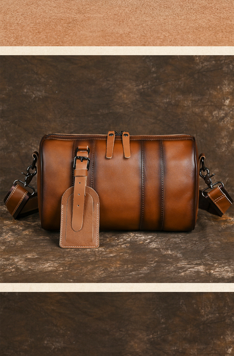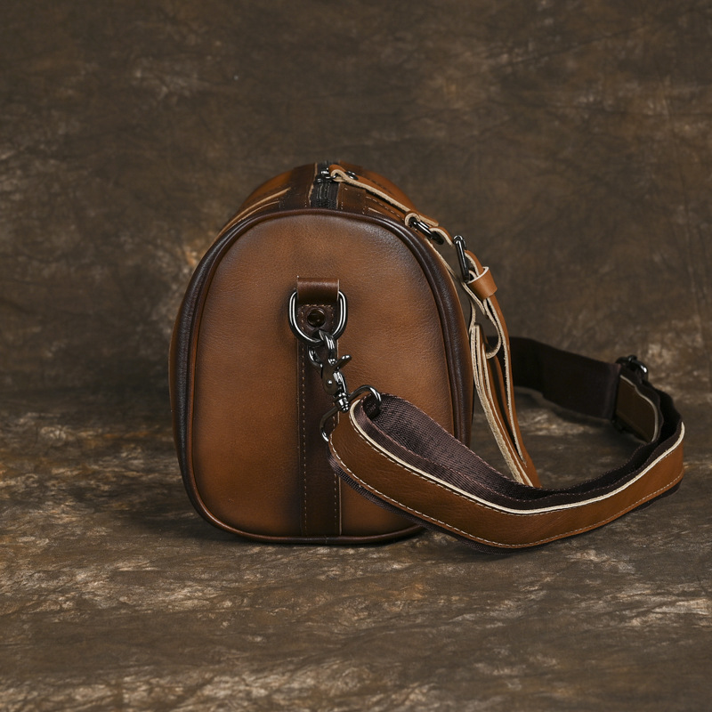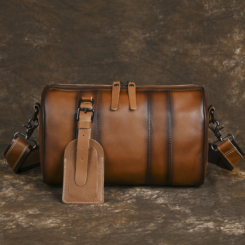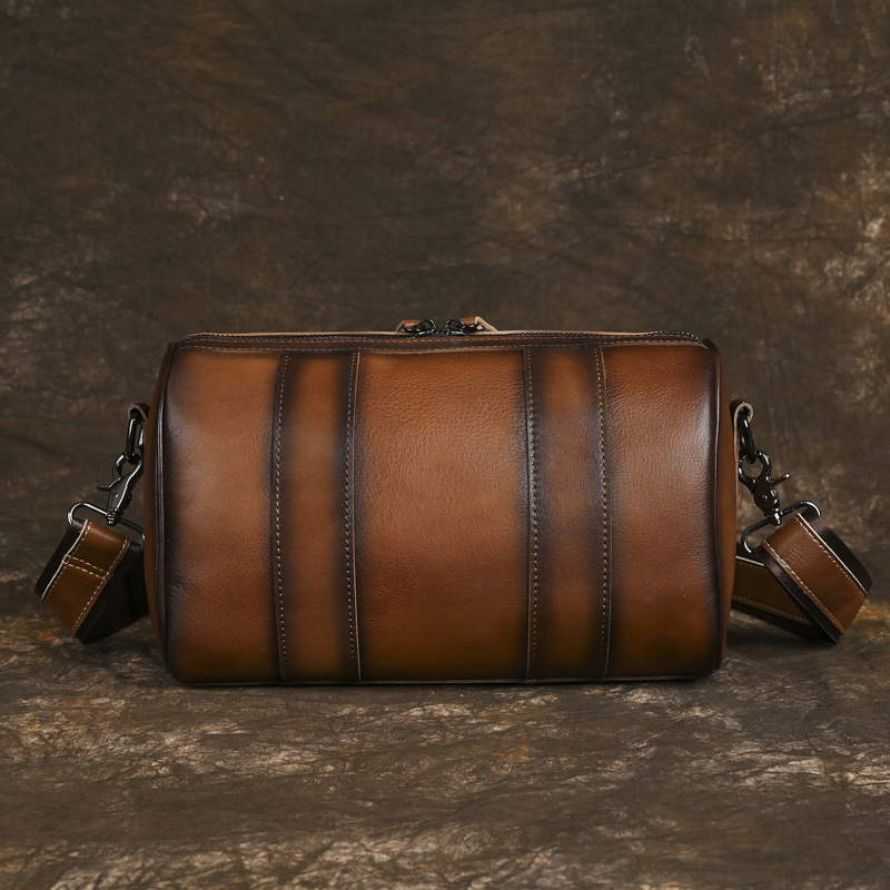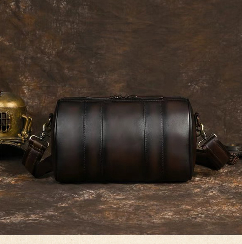 Chiếc túi đeo chéo dành cho nam giới này có kiểu dáng tròn độc đáo như một chiếc gối, mang phong cách cổ điển nhẹ nhàng. Sản phẩm được làm từ chất liệu da bò thật, bền đẹp theo thời gian. Thiết kế túi dáng trụ tròn giúp chứa được nhiều đồ đạc một cách gọn gàng. Bạn có thể đeo túi một cách thoải mái khi đi làm, đi chơi hoặc du lịch. Dây đeo có thể điều chỉnh độ dài phù hợp với vóc dáng của từng người. | Tên sản phẩm: Túi Đeo Vai Nam Chất Liệu Da Bò Phục Cổ Cổ Điển - Túi Xách Ví Nam | Mã sản phẩm: A0210 - Giá: 1.400.000đ | Mã nhà sản xuất: GUDGE-G04Hình ảnh sản phẩm