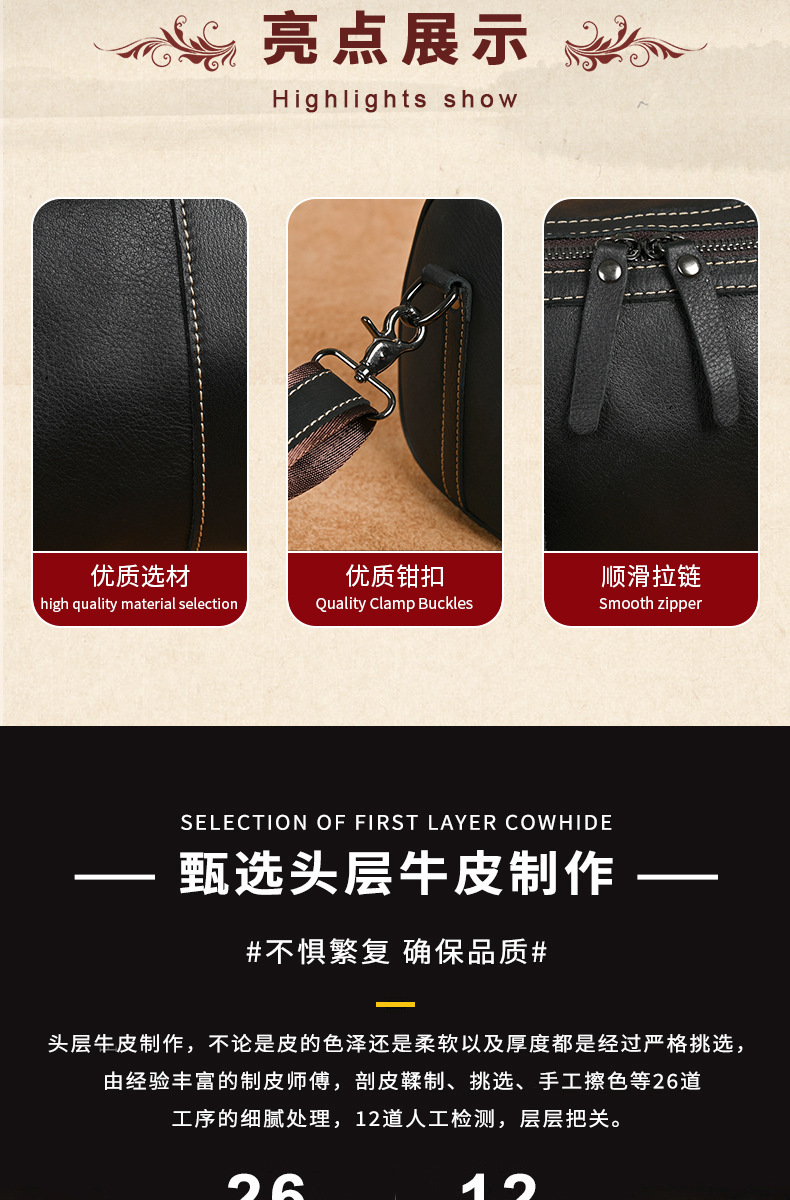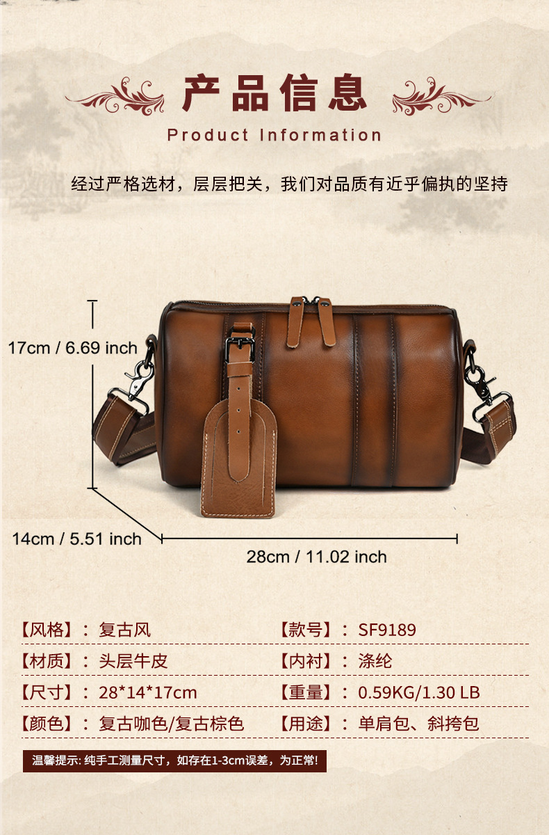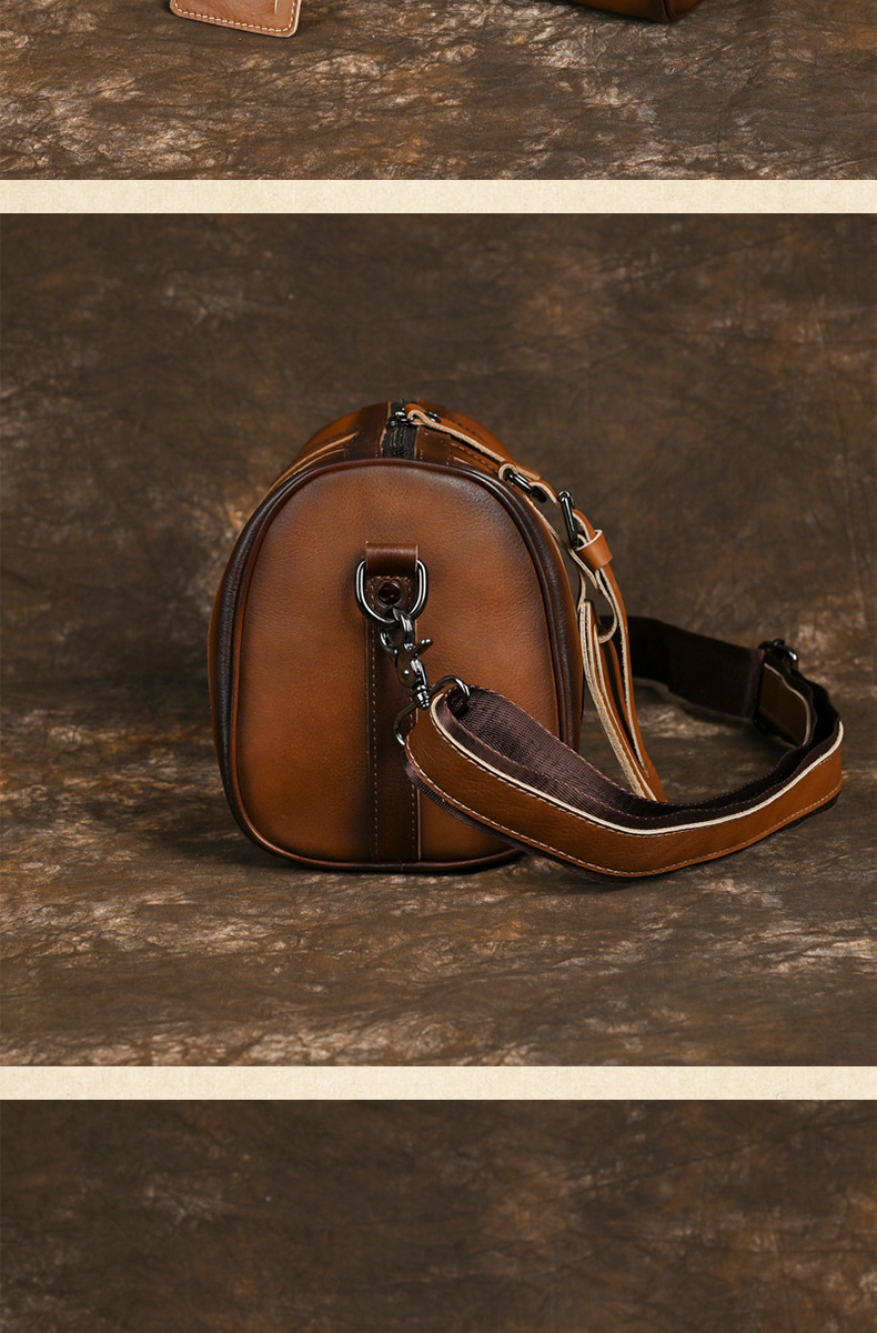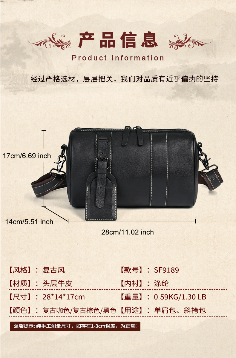 Chiếc túi đeo chéo dành cho nam giới này có kiểu dáng tròn độc đáo như một chiếc gối, mang phong cách cổ điển nhẹ nhàng. Sản phẩm được làm từ chất liệu da bò thật, bền đẹp theo thời gian. Thiết kế túi dáng trụ tròn giúp chứa được nhiều đồ đạc một cách gọn gàng. Bạn có thể đeo túi một cách thoải mái khi đi làm, đi chơi hoặc du lịch. Dây đeo có thể điều chỉnh độ dài phù hợp với vóc dáng của từng người. | Tên sản phẩm: Túi Đeo Vai Nam Chất Liệu Da Bò Phục Cổ Cổ Điển - Túi Xách Ví Nam | Mã sản phẩm: A0210 - Giá: 1.400.000đ | Mã nhà sản xuất: GUDGE-G04Hình ảnh sản phẩm