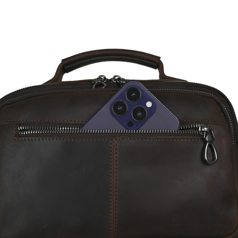 Ba lô da thật này được làm từ lớp da bò mềm mại, có khả năng chống mài mòn tốt. Kiểu dáng thiết kế mang phong cách cổ điển châu Âu, dễ dàng phối hợp với nhiều trang phục khác nhau. Ngăn chứa chính rộng rãi đựng vừa máy tính xách tay và các vật dụng cá nhân cần thiết. Bạn có thể đeo hai qu sau lưng hoặc xách bằng tay qu phụ. Sản phẩm phù hợp cho việc đi làm, đi học hay những chuyến du lịch ngắn ngày. | Tên sản phẩm: Túi Đeo Vai Nam Chất Liệu Da Bò Túi Đựng Máy Tính Phong Cách Âu Mỹ - Túi Xách Ví Nam | Mã sản phẩm: A4539 - Giá: 2.450.000đ | Mã nhà sản xuất: GUDEA-G05Hình ảnh sản phẩm