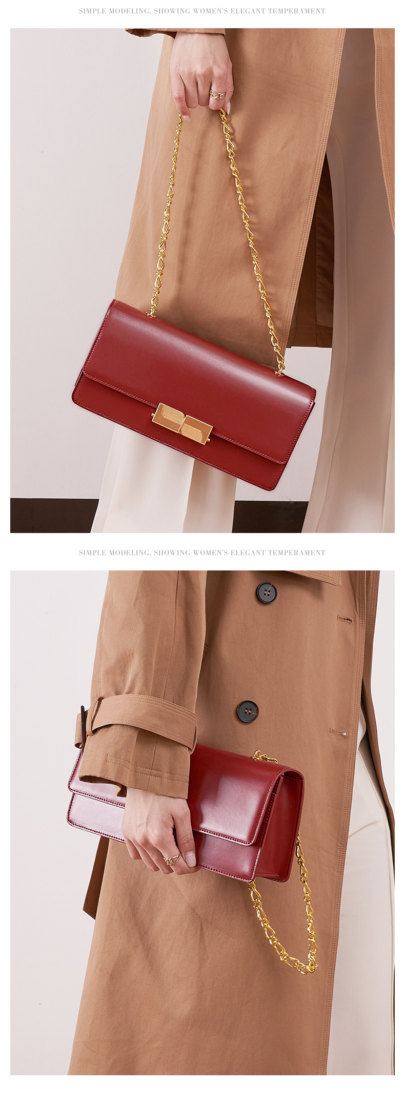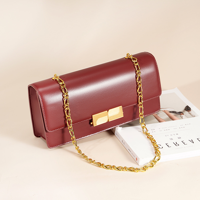 Túi xách kiểu dáng đeo dưới cánh tay, thiết kế nhỏ gọn và thời trang. Sản phẩm có dây đeo chuỗi kim loại linh hoạt, có thể điều chỉnh để mang trên v hoặc khoác chéo. Được làm từ chất liệu da thật, bền đẹp theo thời gian. Kiểu dáng thon dài giúp túi ôm sát cơ thể một cách thanh lịch. Rất tiện lợi khi sử dụng hằng ngày để đựy ví, điện thoại và các vật dụng cá nhân cần thiết. | Tên sản phẩm: Túi Đeo Vai Nữ Chất Liệu Da Bò - Túi Ví Nữ | Mã sản phẩm: A7308 - Giá: 1.060.000đ | Mã nhà sản xuất: GUDEA-G03Hình ảnh sản phẩm
