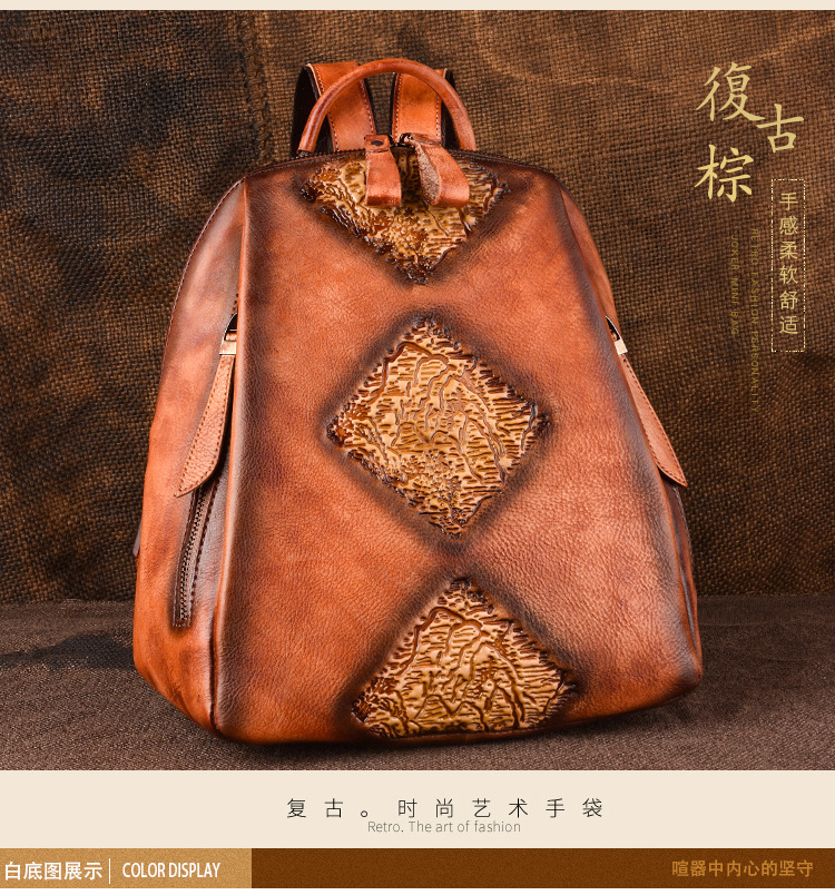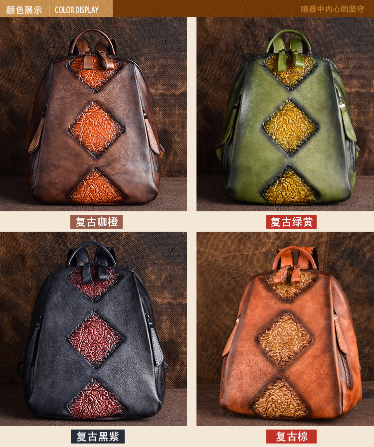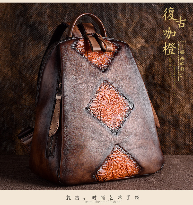 Ba lô da thật dành cho nữ, được thuộc theo cách thân thiện với cây cỏ, mang phong cách hoài cổ với những đường nổi chìm tinh tế. Sản phẩm có nhiều ngăn lớn nhỏ khác nhau, sắp xếp khoa học giúp bạn dễ dàng phân loại và tìm kiếm đồ dùng cá nhân. Dung tích rộng rãi, thích hợp cho nhiều hoạt động thường ngày. Bạn chỉ cần đeo sau lưng và điều chỉnh qu đeo cho vừa vặn là có thể sử dụng ngay. | Tên sản phẩm: Túi Đeo Vai Nữ Chất Liệu Da Bò Họa Tiết Hoa Phục Cổ Cổ Điển - Túi Ví Nữ | Mã sản phẩm: A4972 - Giá: 1.730.000đ | Mã nhà sản xuất: GUDI-G05Hình ảnh sản phẩm