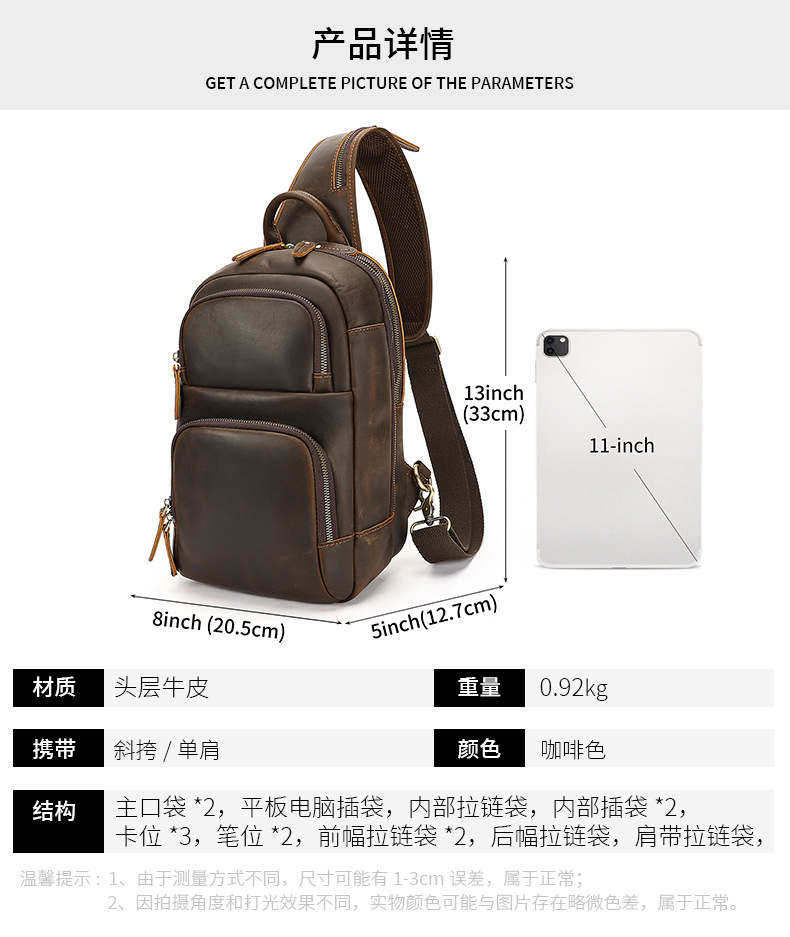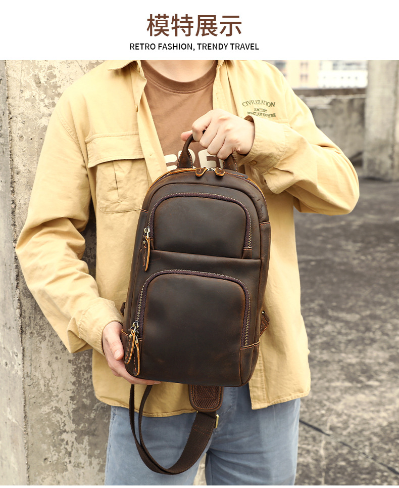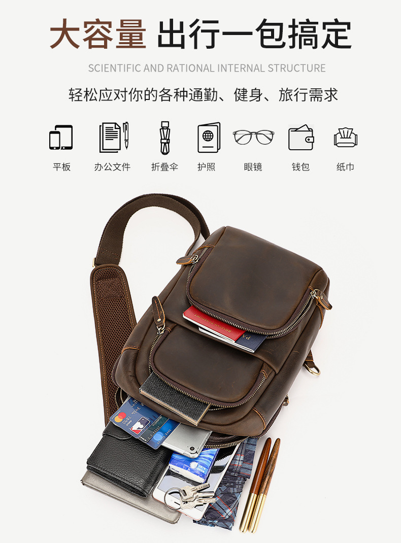 Chiếc túi ngực này làm từ chất liệu da bò mềm dẻo, có vân tự nhiên độc đáo. Thiết kế dáng đeo chéo tiện lợi, khoang chứa rộng rãi đựng vừa nhiều vật dụng cá nhân. Sản phẩm phù hợp cho các chuyến đi chơi, du lịch hay công tác hằng ngày. Bạn có thể đeo túi trước ngực hoặc mang trên v một cách thoải mái, giúp mọi đồ đạc luôn ngăn nắp và dễ dàng lấy ra sử dụng. | Tên sản phẩm: Túi Xách Nam Chất Liệu Da Bò - Túi Xách Ví Nam | Mã sản phẩm: A2662 - Giá: 2.200.000đ | Mã nhà sản xuất: GUDEA-G05Hình ảnh sản phẩm