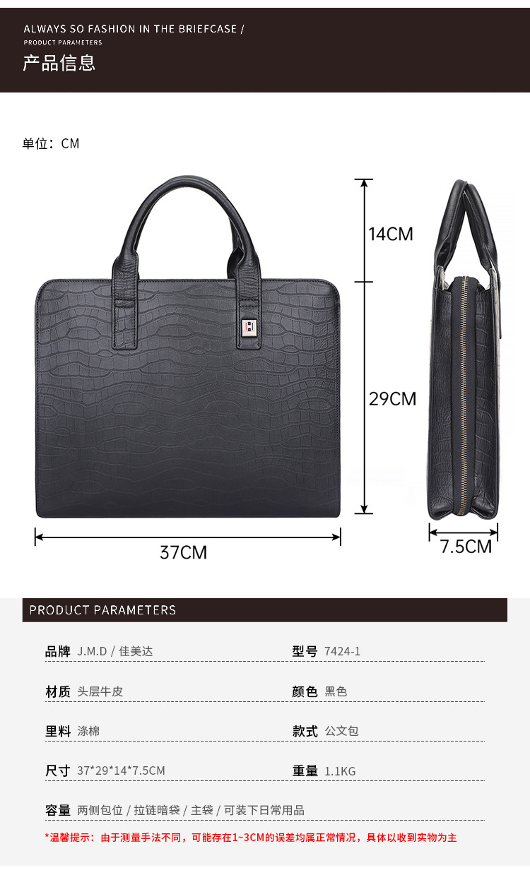 Chiếc cặp công sở dành cho nam giới, được làm từ chất liệu da thật, mang đến vẻ ngoại hình lịch sự và bền bỉ. Thiết kế có qu xách chắc chắn, phù hợp cho việc đi làm, công tác hoặc du lịch. Bên trong cặp có nhiều ngăn rộng rãi, giúp sắp xếp giấy tờ, máy tính và các vật dụng cá nhân một cách gọn gàng. Sử dụng hàng ngày một cách dễ dàng, đáp ứng tốt cho nhu cầu làm việc và di chuyển. | Tên sản phẩm: Túi Xách Nam Chất Liệu Da Bò - Túi Xách Ví Nam | Mã sản phẩm: A6408 - Giá: 2.830.000đ | Mã nhà sản xuất: SHDER-G06Hình ảnh sản phẩm