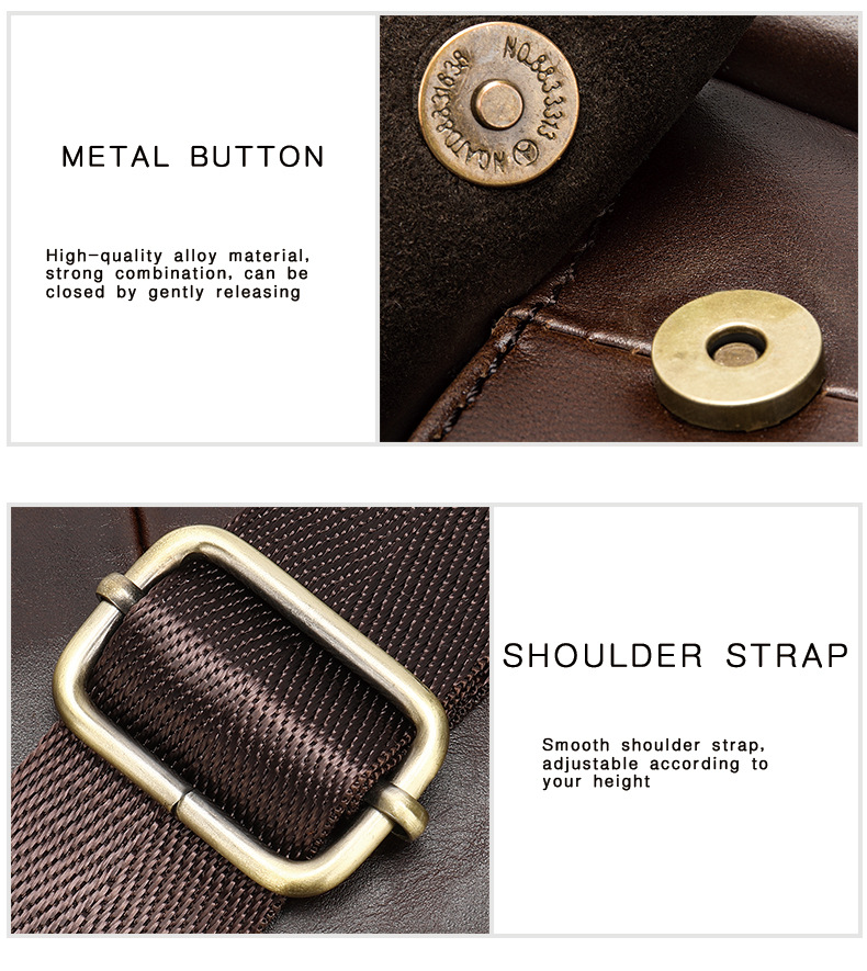 Chiếc túi đeo ngực này được làm từ chất da bò mềm mại và bền bỉ, mang phong cách cổ điển nhẹ nhàng. Thiết kế nhiều ngăn giúp bạn dễ dàng sắp xếp điện thoại, ví và các vật dụng cá nhân khác. Bạn có thể đeo túi trước ngực hoặc điều chỉnh dây đeo để làm túi đeo hông một cách linh hoạt. Sản phẩm phù hợp cho các chuyến đi chơi, dạo phố hay khi vận động nhẹ, giữ đồ đạc luôn ngăn nắp và tiện lợi. | Tên sản phẩm: Túi Xách Nam Chất Liệu Da Bò Phục Cổ Cổ Điển - Túi Xách Ví Nam | Mã sản phẩm: G0666 - Giá: 920.000đ | Mã nhà sản xuất: GUDEA-G03Hình ảnh sản phẩm