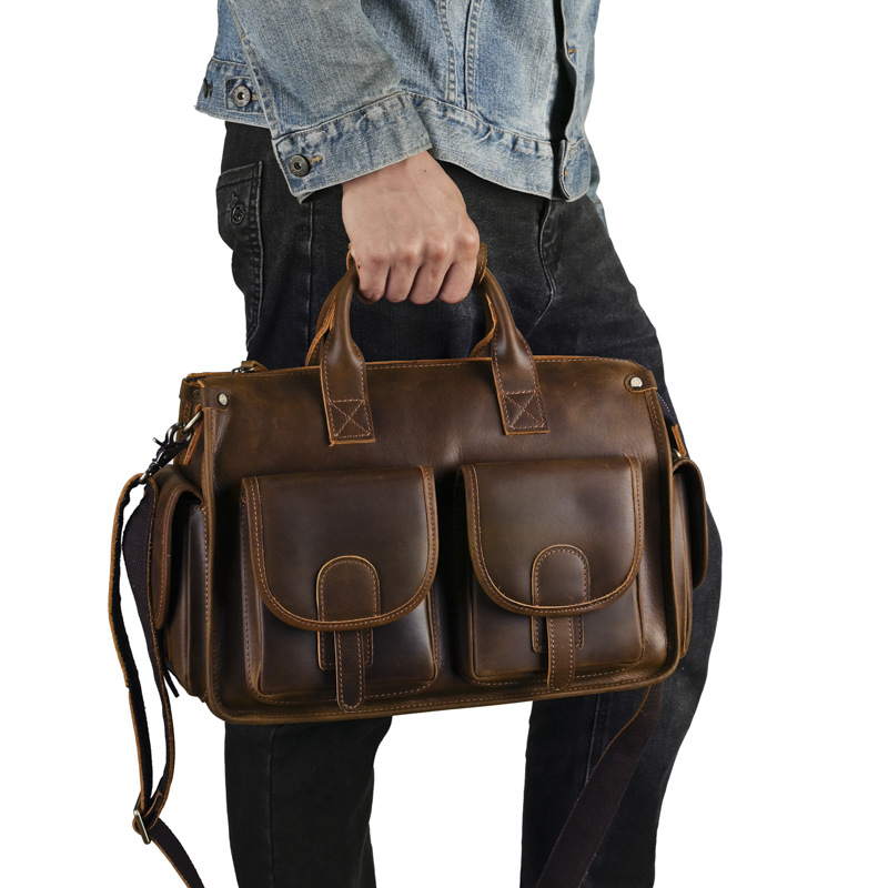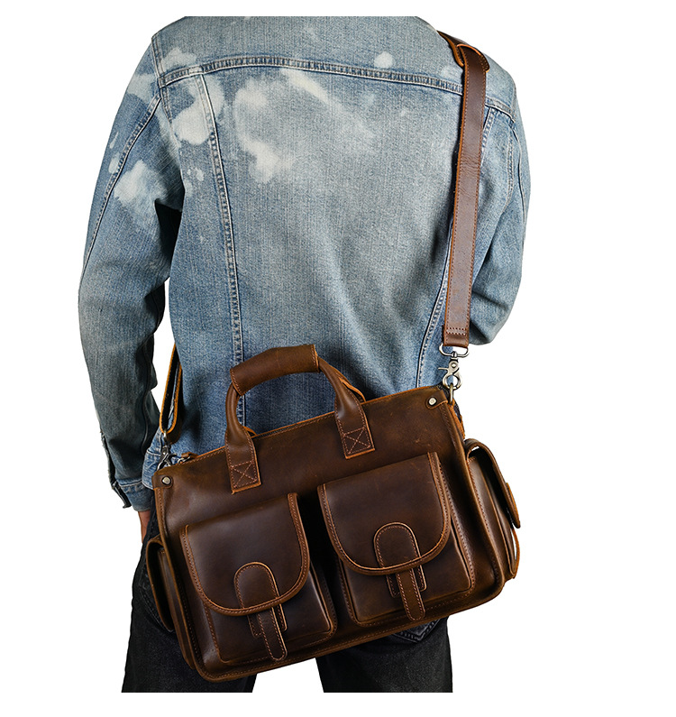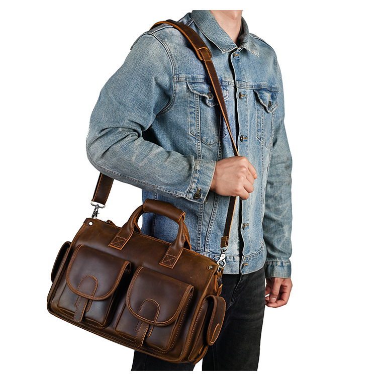 Chiếc túi xách này được làm từ chất da bò thật, có bề mặt tạo hiệu ứng vân mây mưa độc đáo. Kiểu dáng túi đeo chéo hoặc xách tay phù hợp cho việc di chuyển hằng ngày. Ngăn rộng rãi bên trong dễ dàng đựng vừa máy tính xách tay cỡ lớn, cùng các vật dụng cá nhân khác. Bạn có thể điều chỉnh dây đeo để đeo thoải mái bên hông hoặc vắt trên v khi sử dụng. | Tên sản phẩm: Túi Xách Nam Chất Liệu Da Bò Túi Đựng Máy Tính - Túi Xách Ví Nam | Mã sản phẩm: A5062 - Giá: 2.640.000đ | Mã nhà sản xuất: GUDI-G06Hình ảnh sản phẩm
