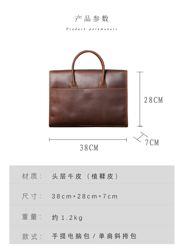 Chiếc cặp mang phong cách cổ điển, được làm từ chất da bò tự nhiên loại tốt. Kiểu dáng đơn giản nhưng mạnh mẽ, phù hợp cho cả việc mang đi làm hay dạo phố. Bạn có thể đeo v, xách tay hoặc đeo chéo một cách thoải mái. Ngăn bên trong rộng rãi, vừa vặn cho chiếc máy tính và các vật dụng cá nhân khác. Sản phẩm có độ bền cao và theo thời gian sẽ lên màu rất đẹp. | Tên sản phẩm: Túi Xách Nam Chất Liệu Da Bò Túi Đựng Máy Tính Phục Cổ Cổ Điển - Túi Xách Ví Nam | Mã sản phẩm: A1790 - Giá: 2.640.000đ | Mã nhà sản xuất: SHDND-G06Hình ảnh sản phẩm