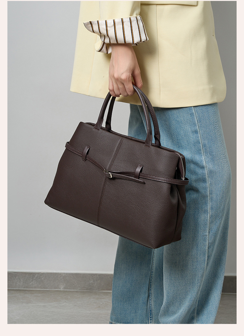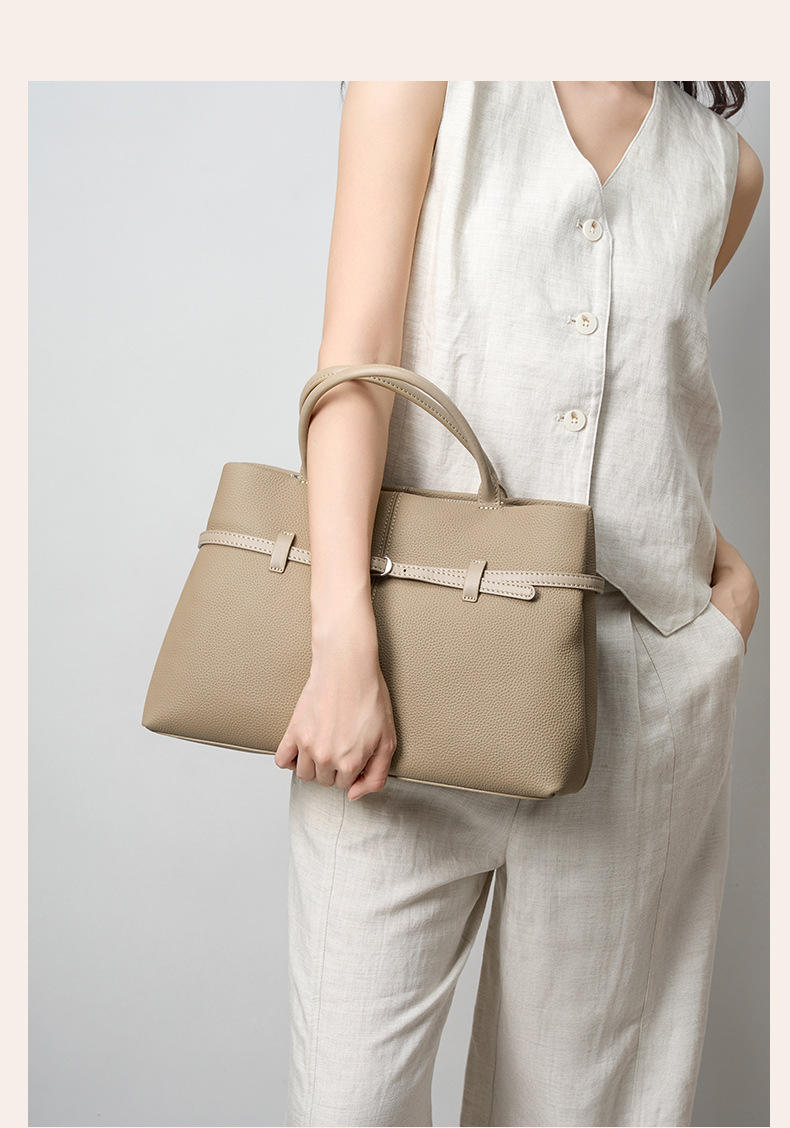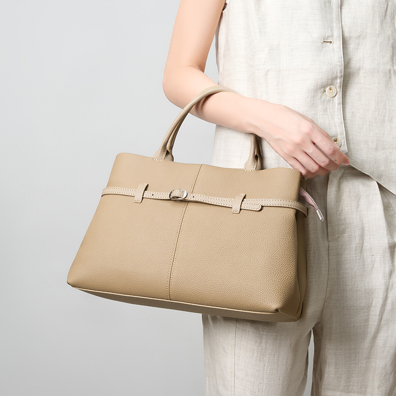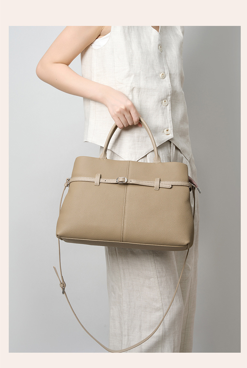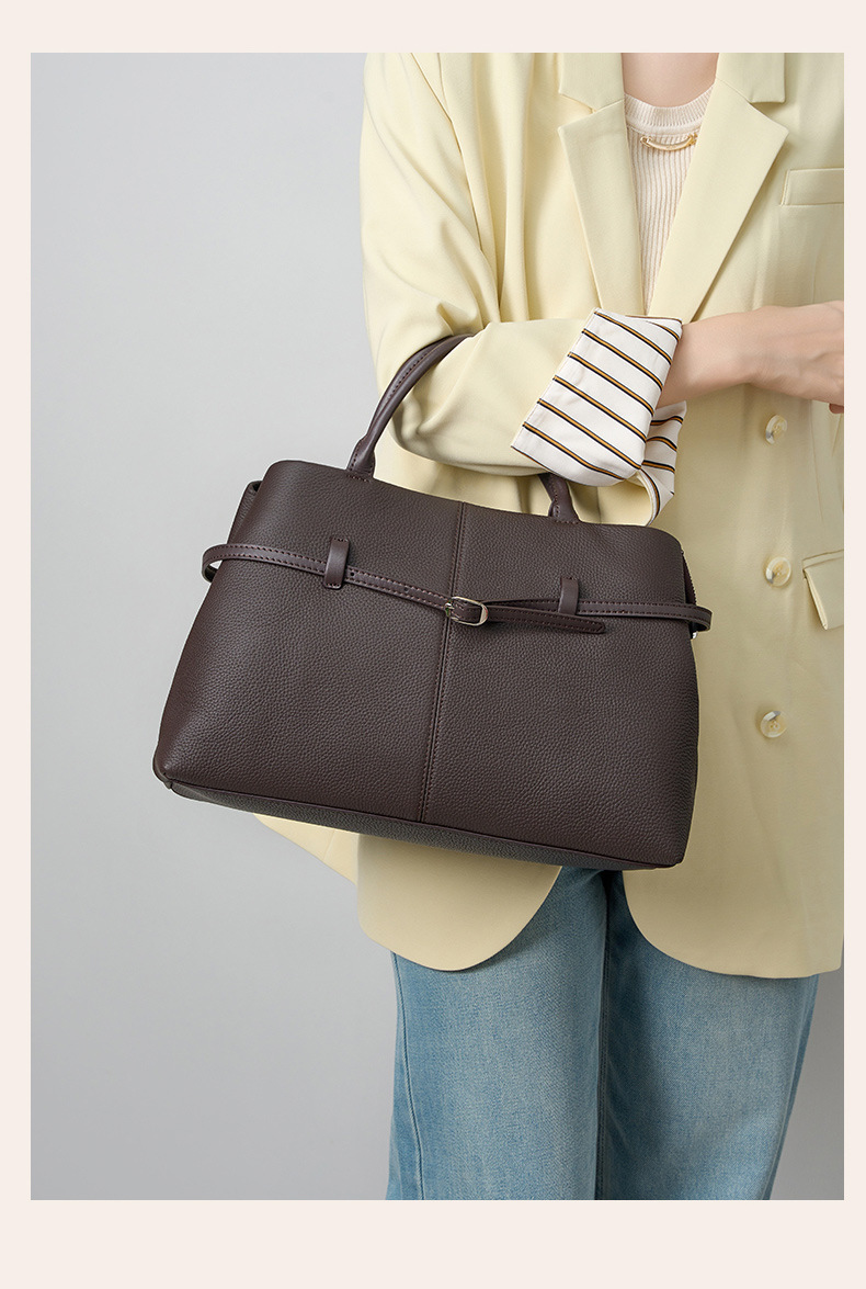 Chiếc túi xách tay dành cho nữ này có kiểu dáng đơn giản, dễ phối đồ với nhiều trang phục. Túi được làm từ chất da bò thật, bền đẹp theo thời gian. Thiết kế ngăn rộng rãi bên trong giúp bạn sắp xếp đồ dùng cá nhân gọn gàng. Có thể đeo trên v hoặc xách tay một cách thoải mái. Sản phẩm phù hợp để sử dụng hàng ngày, cho những buổi làm việc hay đi chơi. | Tên sản phẩm: Túi Xách Nữ Chất Liệu Da Bò - Túi Ví Nữ | Mã sản phẩm: A0455 - Giá: 1.270.000đ | Mã nhà sản xuất: GUDLE-G04Hình ảnh sản phẩm