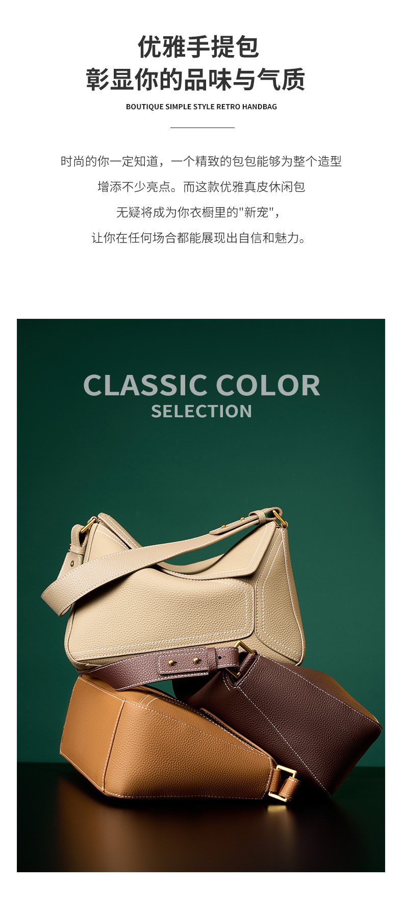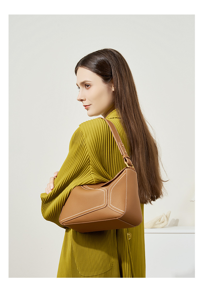Túi dành cho nữ, kiểu dáng mới, có thể đeo v hoặc khoác chéo. Thiết kế hình khối độc đáo, ôm gọn vào nách một cách thoải mái. Chất liệu làm từ da thật, bề mặt mềm mại như gối ôm. Dây đeo có thể điều chỉnh linh hoạt, rất phù hợp để sử dụng hằng ngày hoặc khi đi làm. Dung tích vừa đủ để đựng các vật dụng cá nhân cần thiết, vừa tiện lợi lại tạo điểm nhấn cho trang phục. | Tên sản phẩm: Túi Xách Nữ Chất Liệu Da Bò - Túi Ví Nữ | Mã sản phẩm: A6545 - Giá: 1.250.000đ | Mã nhà sản xuất: GUDEA-G04Hình ảnh sản phẩm