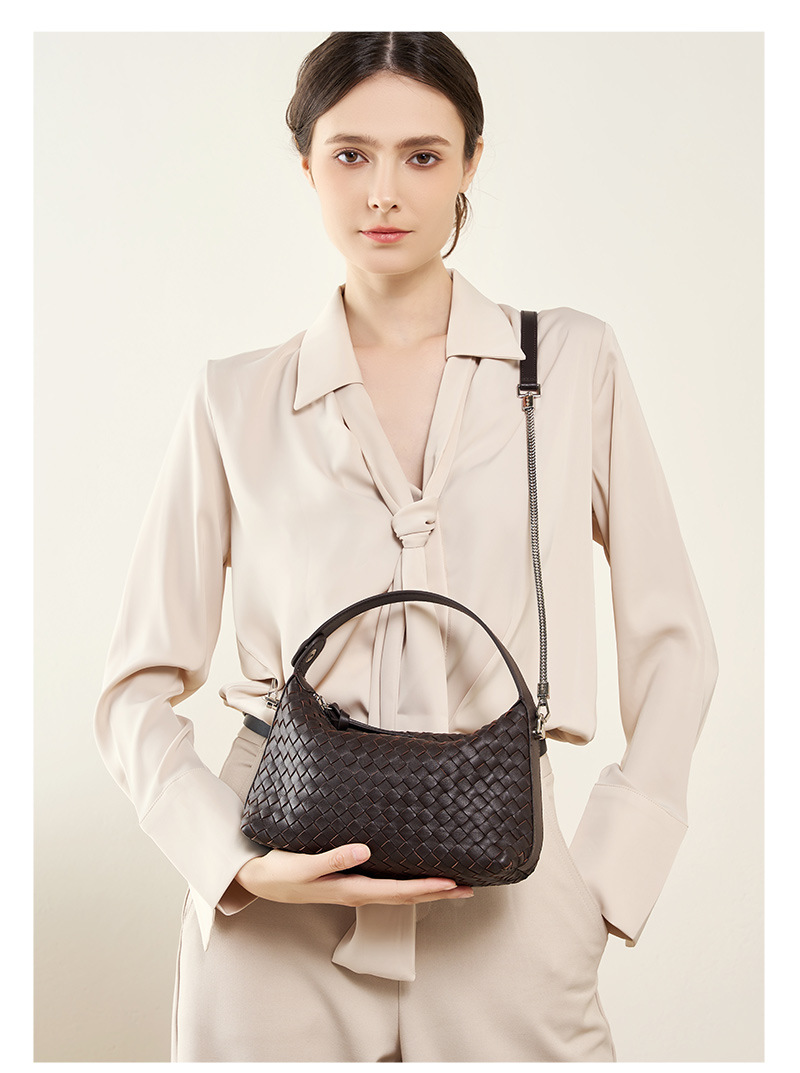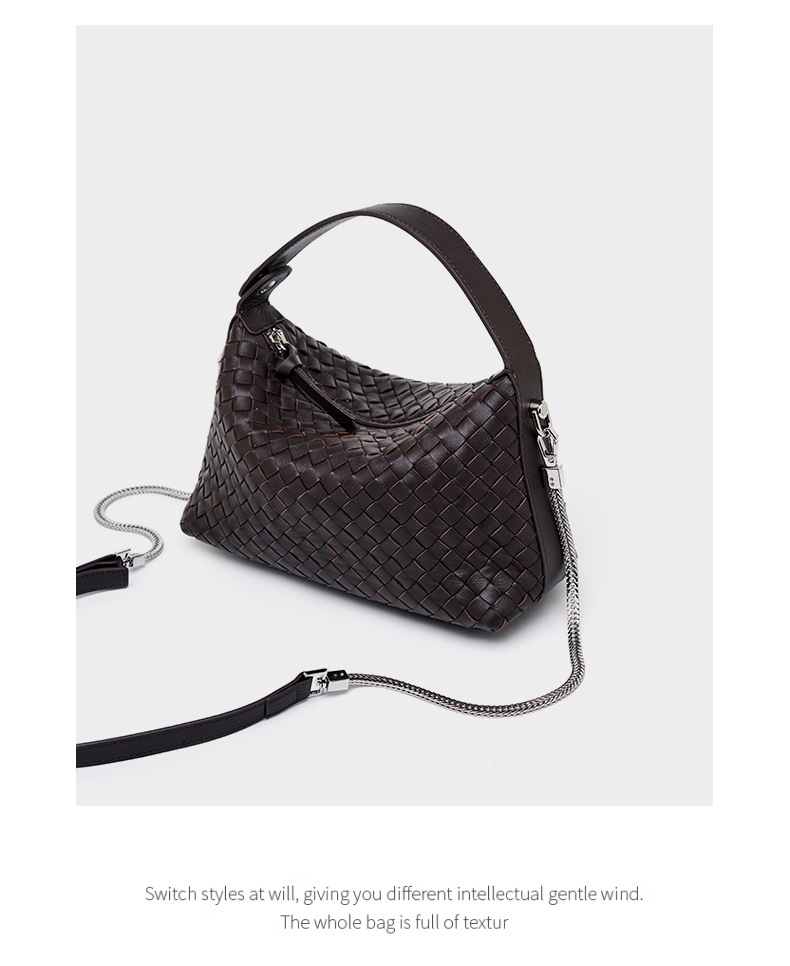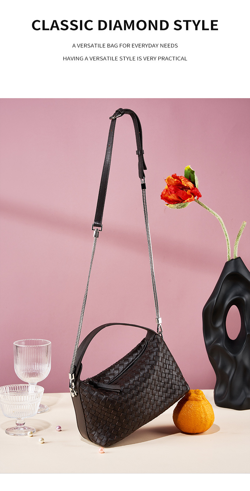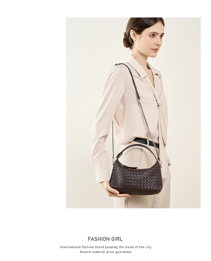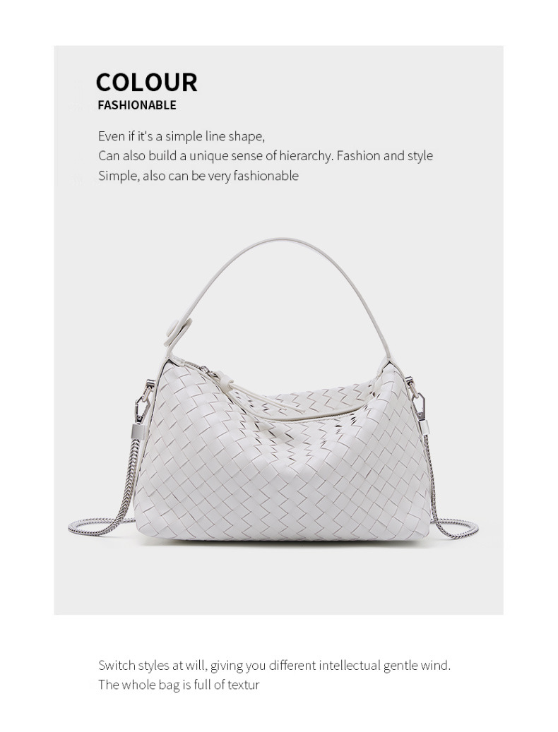 Túi xách kiểu dáng mới, được đan từ chất liệu da thật một cách tinh xảo. Kiểu túi hình chiếc gối ôm tròn độc đáo, có thể đeo chéo bằng dây xích hoặc xách tay rất tiện lợi. Thiết kế nhỏ gọn nhưng chứa được nhiều đồ dùng cá nhân cần thiết. Phù hợp để sử dụng hàng ngày, đi làm hoặc dạo phố. Bạn có thể dễ dàng phối hợp với nhiều trang phục khác nhau. | Tên sản phẩm: Túi Xách Nữ Chất Liệu Da Bò - Túi Ví Nữ | Mã sản phẩm: A6595 - Giá: 1.390.000đ | Mã nhà sản xuất: GUDEA-G04Hình ảnh sản phẩm