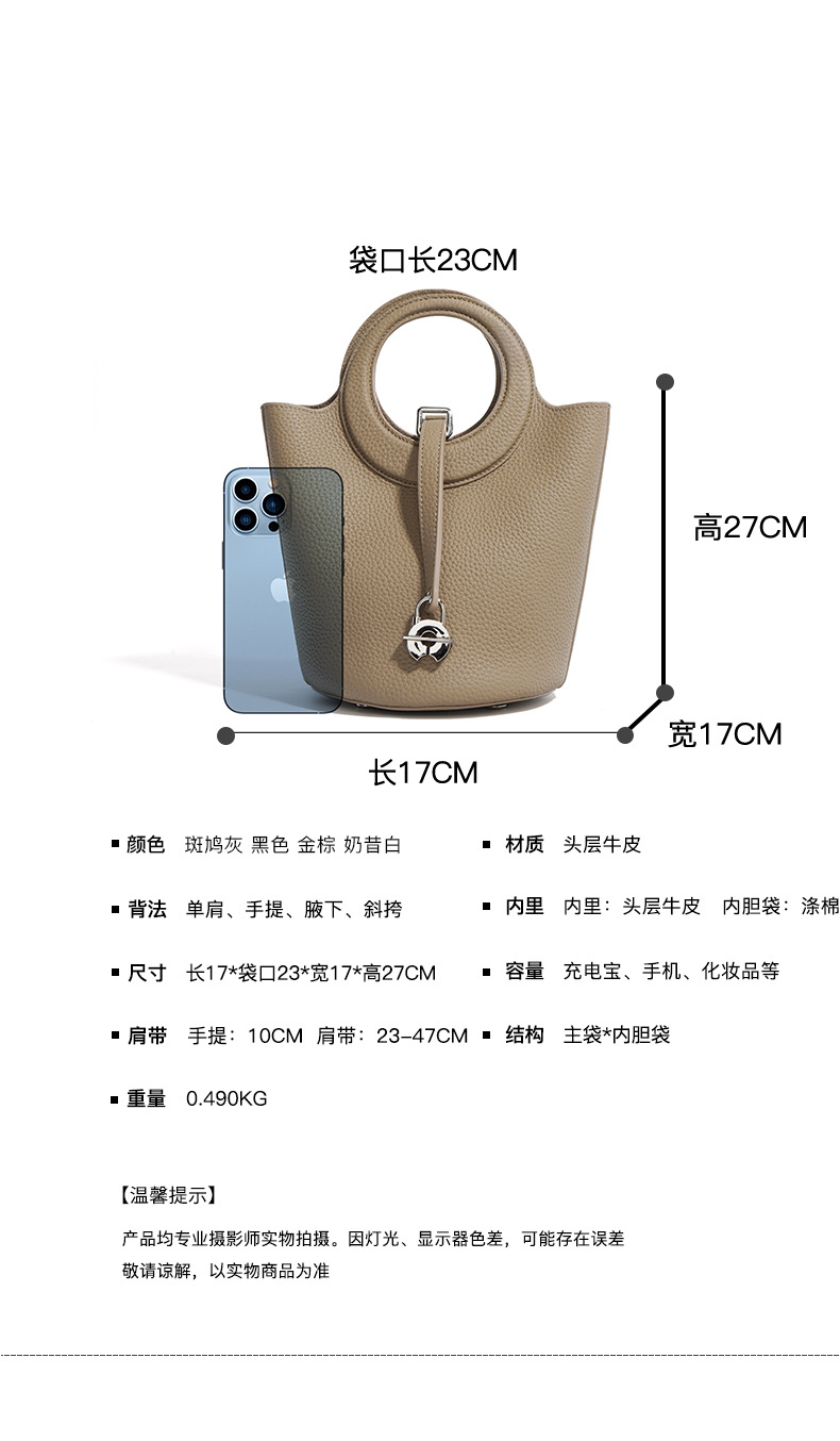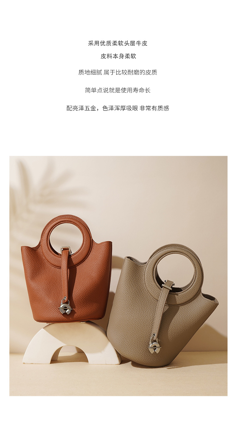 Túi xách tay kiểu dáng giỏ đi chợ nhỏ gọn, được làm từ chất da bò mềm mại và bền chắc. Thiết kế dạng thùng cổ điển dễ dàng kết hợp với nhiều trang phục khác nhau. Bên trong túi rộng rãi, giúp bạn sắp xếp đồ dùng cá nhân gọn gàng. Có thể mang trên tay hoặc xách bằng qu. Dùng túi hàng ngày, phù hợp cho nhiều hoàn cảnh sử dụng. | Tên sản phẩm: Túi Xách Nữ Chất Liệu Da Bò - Túi Ví Nữ | Mã sản phẩm: A7234 - Giá: 1.440.000đ | Mã nhà sản xuất: GUDEA-G04Hình ảnh sản phẩm