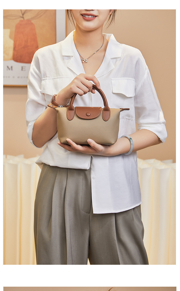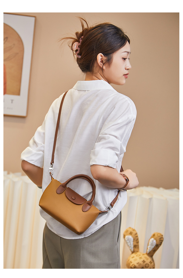 Túi xách tay thiết kế kiểu dáng nhỏ gọn, lấy ý tưởng từ hình dáng chiếc bánh vằn thắn duyên dáng. Sản phẩm được làm từ chất liệu da bò mềm mại, bền chắc, mang đến cảm giác cầm nắm dễ chịu. Túi có hai cách đeo linh hoạt: cầm tay thanh lịch hoặc mang chéo tiện dụng nhờ dây đ điều chỉnh được. Ngăn chính rộng rãi đựng vừa ví, điện thoại, cùng các vật dụng cá nhân cần thiết. Dễ dàng phối hợp với nhiều trang phục khác nhau để tạo nên vẻ ngoại ưa nhìn cho người dùng. | Tên sản phẩm: Túi Xách Nữ Chất Liệu Da Bò Hàng Mùa Hè - Túi Ví Nữ | Mã sản phẩm: A1051 - Giá: 770.000đ | Mã nhà sản xuất: GUDAT-G02Hình ảnh sản phẩm