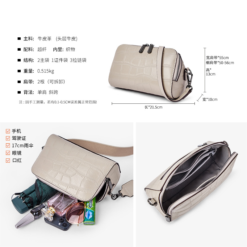 Chiếc túi nhỏ dành cho nữ với hai dây đeo linh hoạt, có thể đeo chéo hoặc khoác v theo ý thích. Chất liệu da thật mang đến độ bền và cảm giác mềm mại. Kiểu dáng nhỏ gọn, thiết kế theo phong cách trẻ trung hiện đại, phù hợp cho các dịp đi chơi, dạo phố. Bạn có thể dễ dàng phối hợp với nhiều trang phục khác nhau để tạo điểm nhấn cho bộ đồ của mình. | Tên sản phẩm: Túi Xách Nữ Chất Liệu Da Bò Hàng Mùa Hè Phong Cách Hàn Quốc - Túi Ví Nữ | Mã sản phẩm: A2528 - Giá: 1.000.000đ | Mã nhà sản xuất: GUDHI-G03Hình ảnh sản phẩm