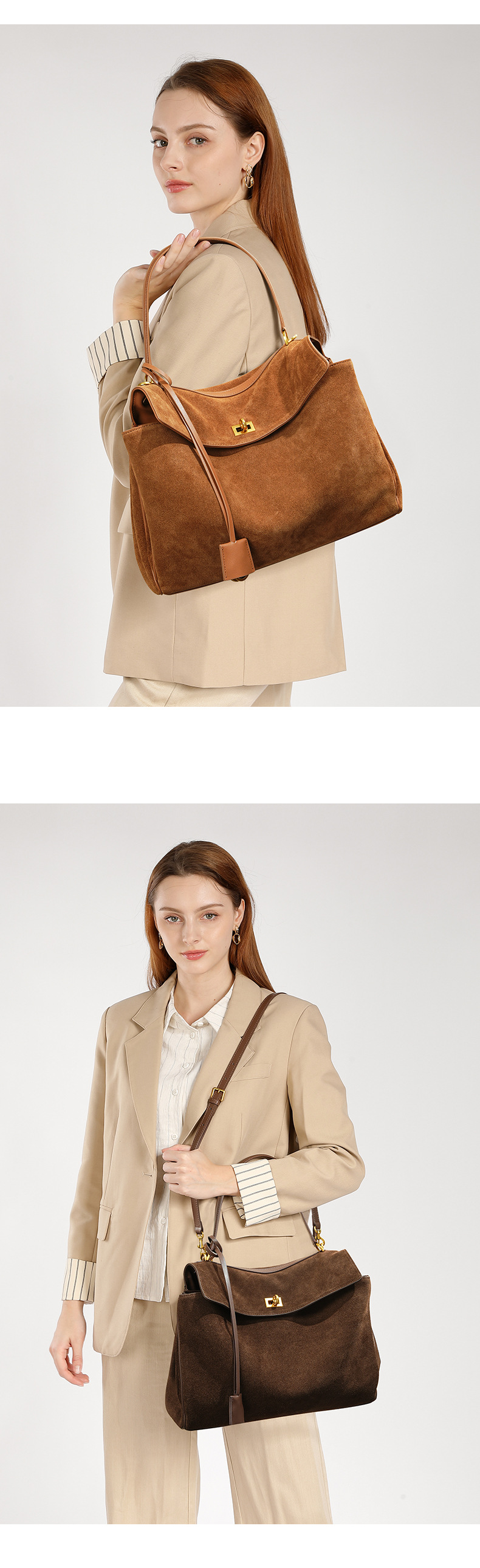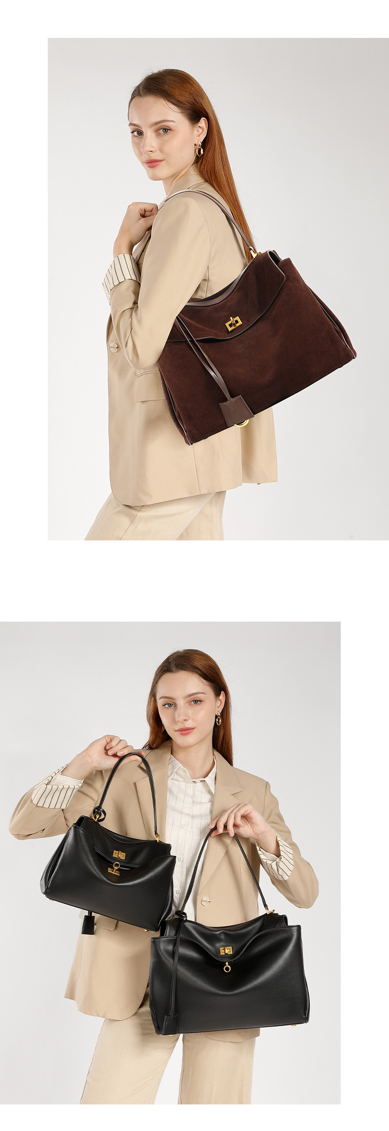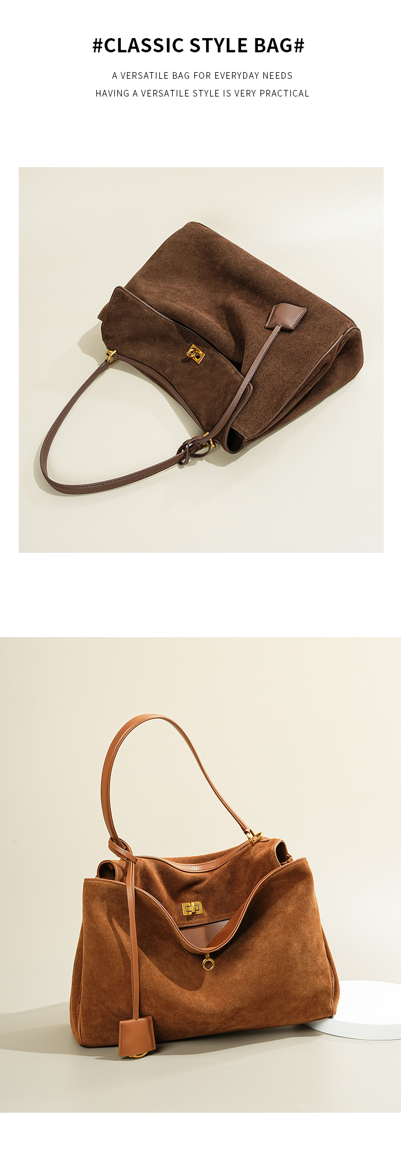 Chiếc túi xách này có kích thước rộng rãi, phù hợp để mang theo nhiều vật dụng cần thiết mỗi khi ra ngoài. Chất liệu chính từ da mềm mịn, kết hợp điểm nhấn bằng vải nỉ mượt ở phần thân. Bạn có thể đeo chéo một cách thoải mái, khoác trên v gọn gàng hoặc xách tay bằng qu dài. Thiết kế này tiện lợi cho cả việc sử dụng hằng ngày lẫn những dịp dạo phố, giúp bạn luôn giữ được phong cách nhẹ nhàng và thực tế. | Tên sản phẩm: Túi Xách Nữ Chất Liệu Da Bò Hàng Mùa Xuân Thu Đông - Túi Ví Nữ | Mã sản phẩm: A0399 - Giá: 2.340.000đ | Mã nhà sản xuất: GUDLE-G05Hình ảnh sản phẩm