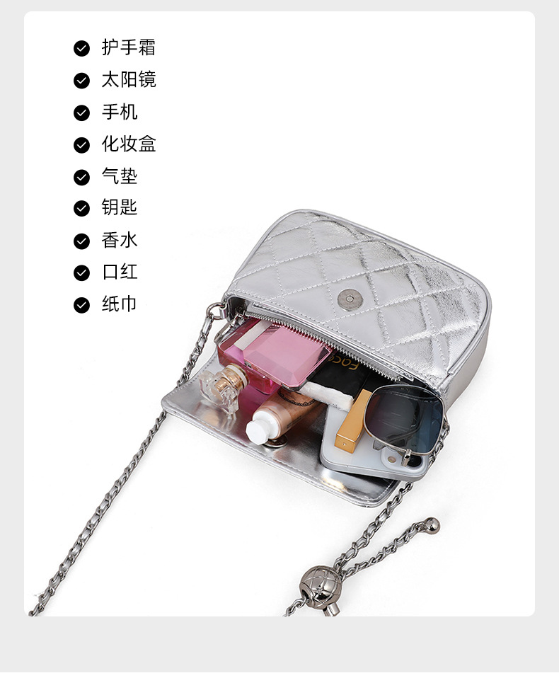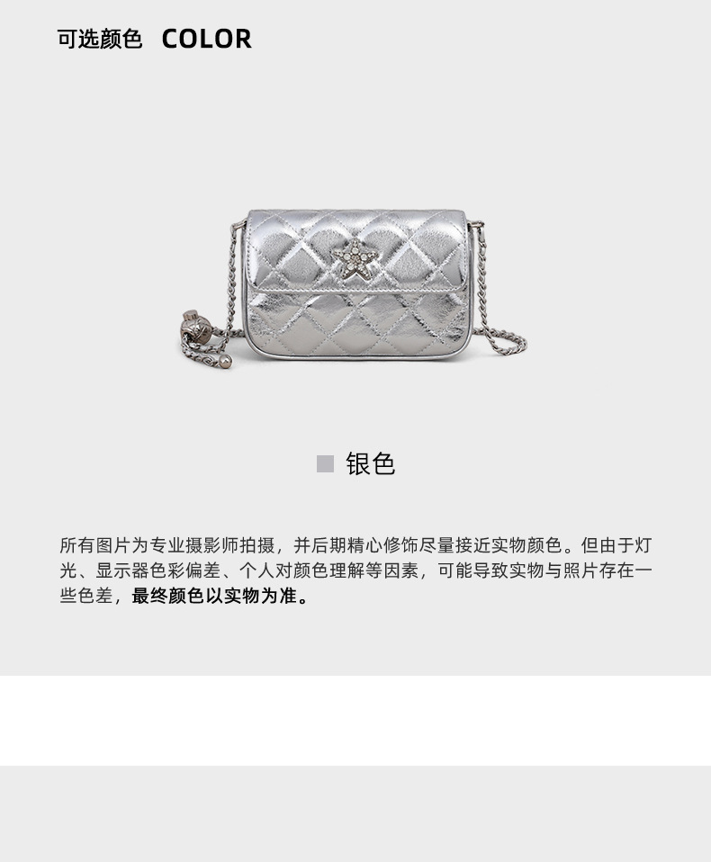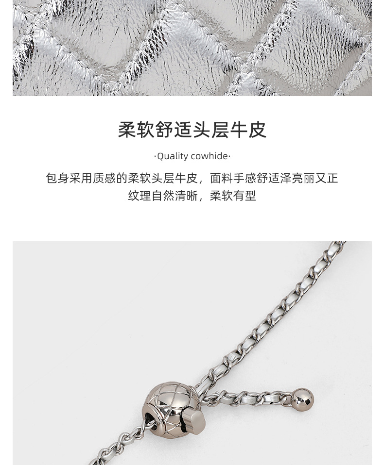 Chiếc túi nhỏ dáng vuông này có dây đeo chuỗi mắt xích có thể điều chỉnh, mang trên v hoặc vắt chéo đều tiện lợi. Sản phẩm được làm từ chất liệu da thật, cho cảm giác mềm mại và bền bỉ. Màu bạc thời thượng dễ dàng phối hợp với nhiều trang phục khác nhau, phù hợp cho nhiều dịp sử dụng. Bạn chỉ cần đeo túi và sắp xếp đồ dùng cá nhân gọn gàng bên trong là đã sẵn sàng để ra ngoài. | Tên sản phẩm: Túi Xách Nữ Chất Liệu Da Bò Hàng Mùa Xuân Thu Đông - Túi Ví Nữ | Mã sản phẩm: A5410 - Giá: 1.390.000đ | Mã nhà sản xuất: GUDEA-G04Hình ảnh sản phẩm