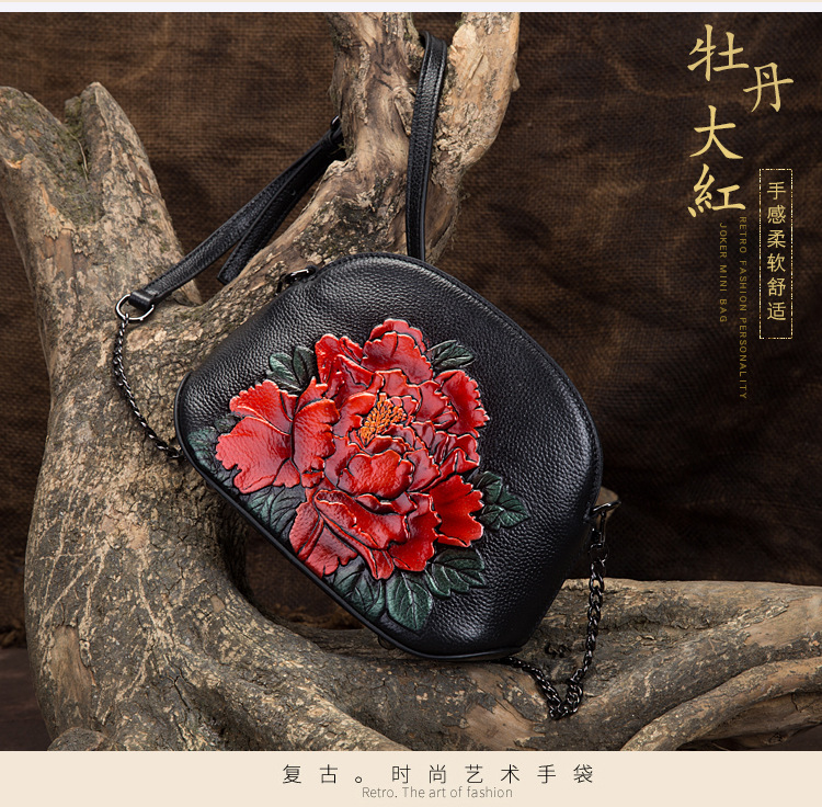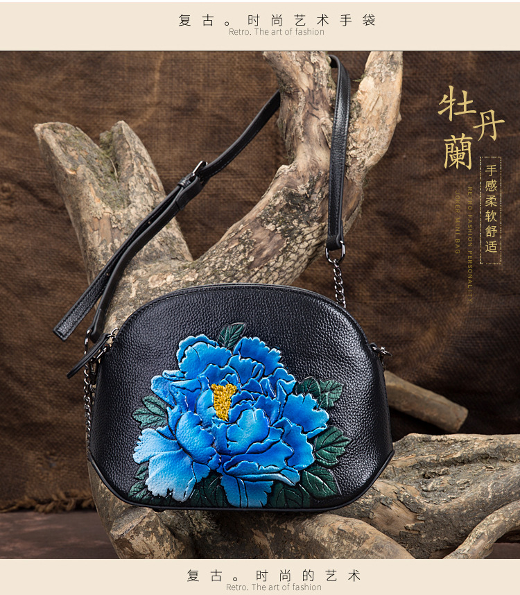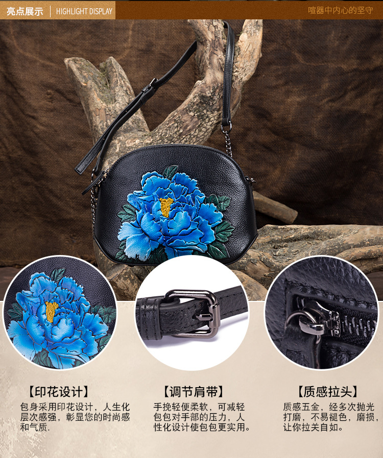 Chiếc túi xách chéo này có kiểu dáng nhỏ gọn, phù hợp cho những buổi đi chơi thường ngày. Túi được làm từ chất liệu da bò mềm mại, bền chắc, bề mặt có họa tiết ép nổi và đường nét vẽ tay tinh tế. Thiết kế dây đeo có thể điều chỉnh linh hoạt, giúp bạn đeo một cách thoải mái. Có thể dùng để đựng ví, điện thoại và một số vật dụng cá nhân. Mẫu mã thanh lịch, thích hợp dùng trong nhiều hoàn cảnh. | Tên sản phẩm: Túi Xách Nữ Chất Liệu Da Bò Họa Tiết Hoa Hàng Mùa Hè Trung Niên - Túi Ví Nữ | Mã sản phẩm: A5040 - Giá: 1.070.000đ | Mã nhà sản xuất: GUDI-G03Hình ảnh sản phẩm