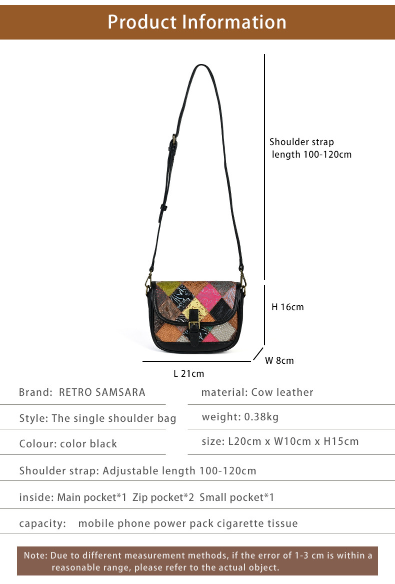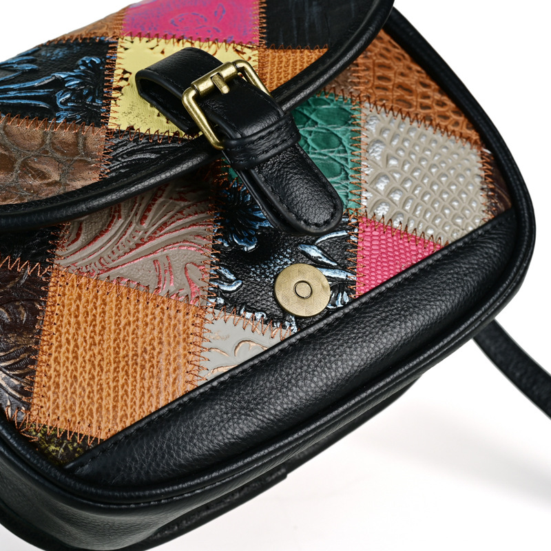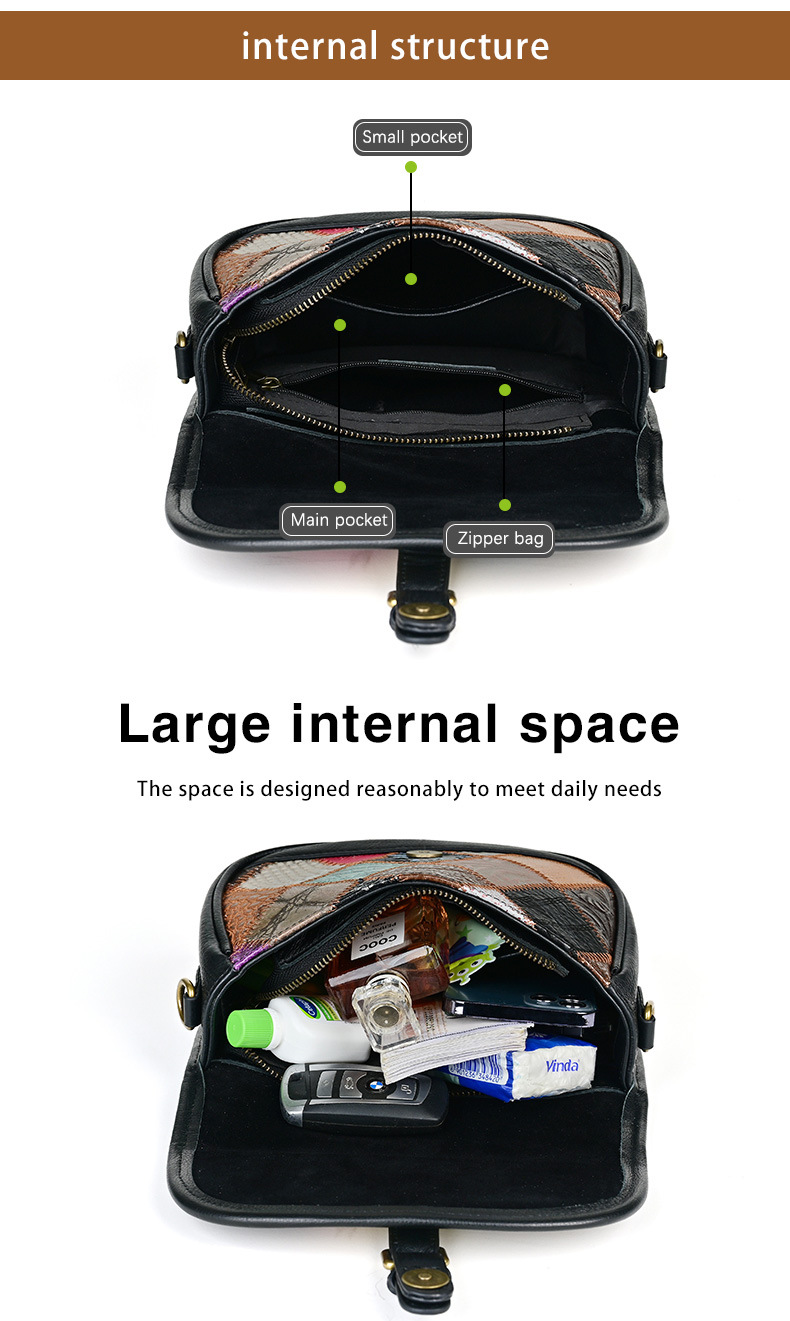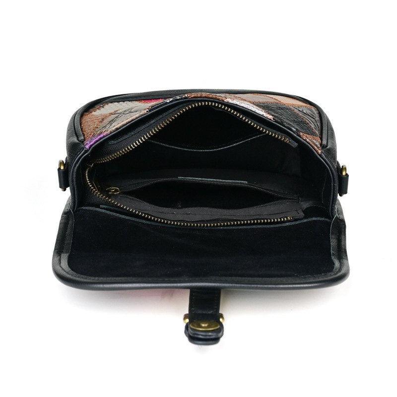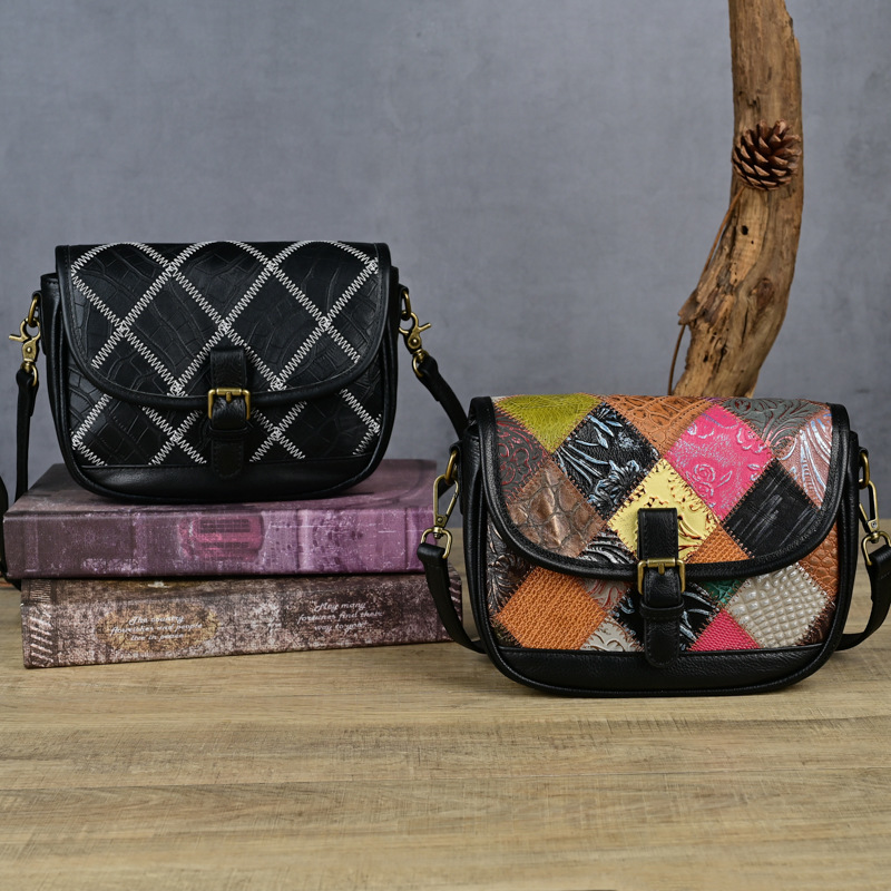 Chiếc túi này mang phong cách dân tộc độc đáo, kết hợp họa tiết hình thoi tinh xảo. Chất liệu da thật tự nhiên được ghép nối khéo léo, tạo nên vẻ đẹp cá tính mà vẫn tinh tế. Thiết kế nhỏ gọn với dây đeo điều chỉnh linh hoạt, bạn có thể đeo v hoặc khoác chéo tùy thích. Sản phẩm phù hợp để đựng các vật dụng cần thiết như ví, điện thoại khi đi làm hay dạo phố. Cách sử dụng đơn giản, chỉ cần móc khóa kéo và điều chỉnh dây đeo theo ý muốn. | Tên sản phẩm: Túi Xách Nữ Chất Liệu Da Bò Kẻ Caro Kẻ Caro - Túi Ví Nữ | Mã sản phẩm: A4570 - Giá: 1.390.000đ | Mã nhà sản xuất: GUDEA-G04Hình ảnh sản phẩm