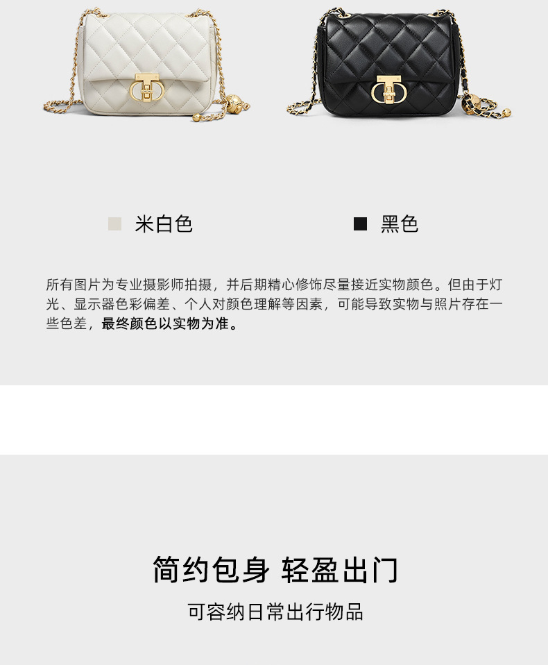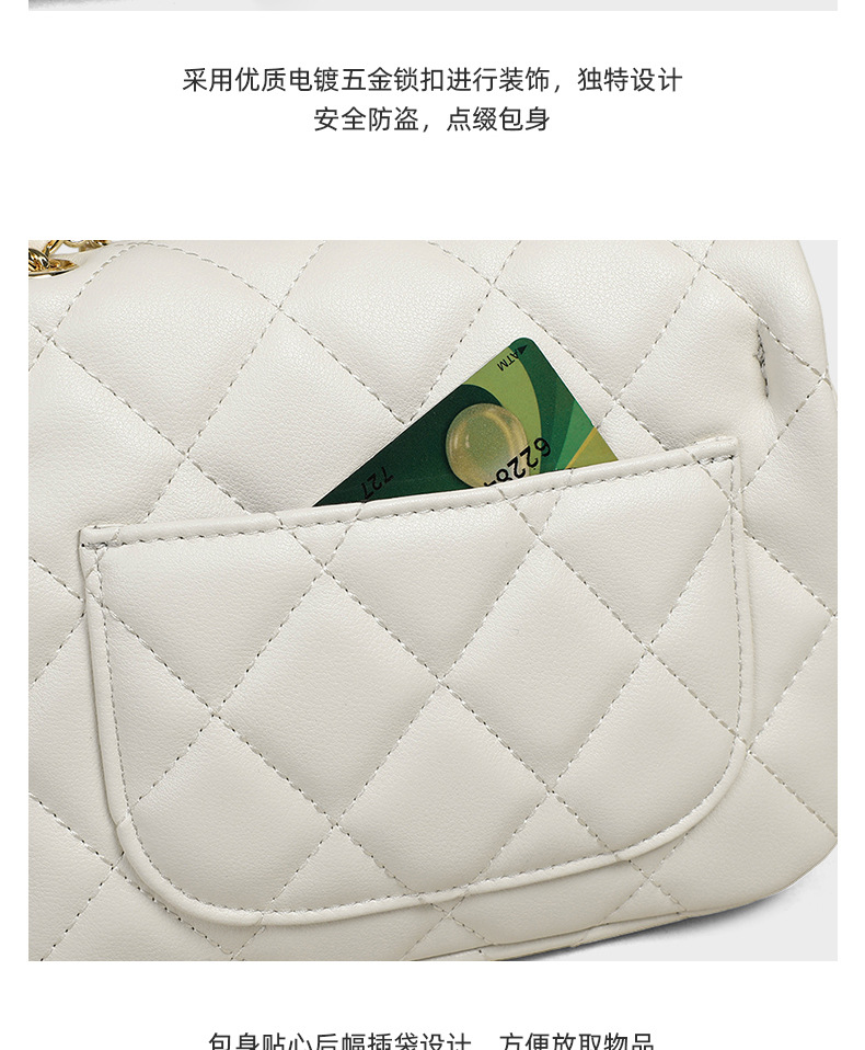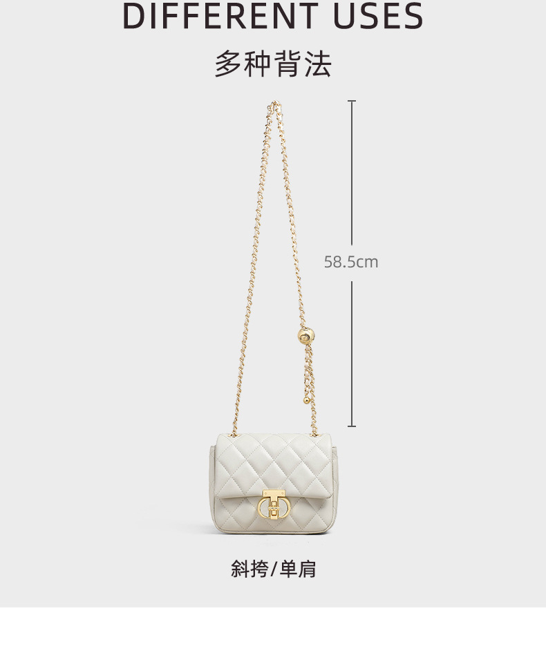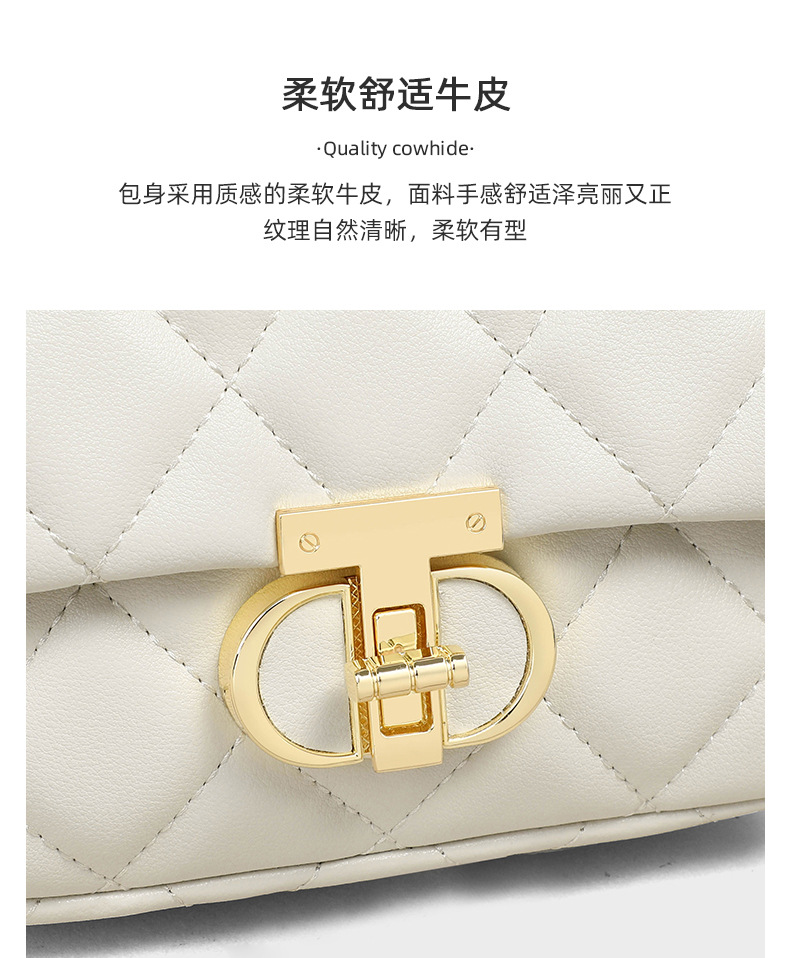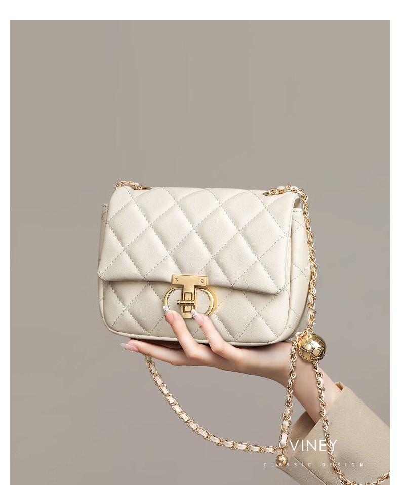 Chiếc túi xách nữ dáng vuông nhỏ, có dây đeo chuỗi vòng kim loại linh hoạt, phù hợp để đeo chéo hoặc xách tay. Chất liệu da mềm mịn được điểm xuyết bằng đường may tạo hình ô quả trám tinh tế. Kiểu dáng đơn giản, dễ phối đồ với nhiều trang phục khác nhau. Bạn có thể dùng nó hàng ngày cho công việc hoặc những dịp đi chơi thông thường. | Tên sản phẩm: Túi Xách Nữ Chất Liệu Da Bò Kẻ Caro Kẻ Caro Hàng Mùa Xuân Thu Đông - Túi Ví Nữ | Mã sản phẩm: A5462 - Giá: 1.390.000đ | Mã nhà sản xuất: GUDEA-G04Hình ảnh sản phẩm