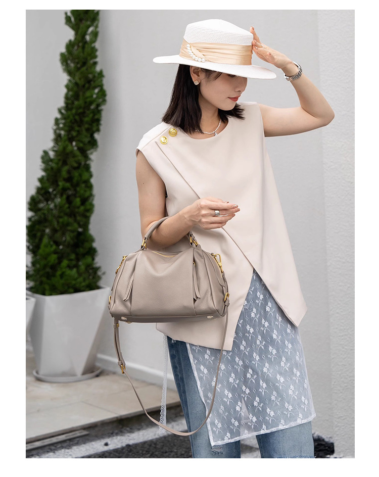 Chiếc túi xách này được làm từ chất da bò mềm mại và bền đẹp. Kiểu dáng hiện đại, trẻ trung với dây đeo có thể điều chỉnh để đeo v hoặc khoác chéo một cách thoải mái. Thiết kế dáng túi phồng nhẹ ở thân tạo không gian rộng rãi, giúp bạn dễ dàng sắp xếp các vật dụng cá nhân hằng ngày. Đây là người bạn đồng hành phù hợp cho nhiều dịp trong ngày. | Tên sản phẩm: Túi Xách Nữ Chất Liệu Da Bò Phong Cách Âu Mỹ - Túi Ví Nữ | Mã sản phẩm: A2269 - Giá: 1.630.000đ | Mã nhà sản xuất: GUDEA-G05Hình ảnh sản phẩm