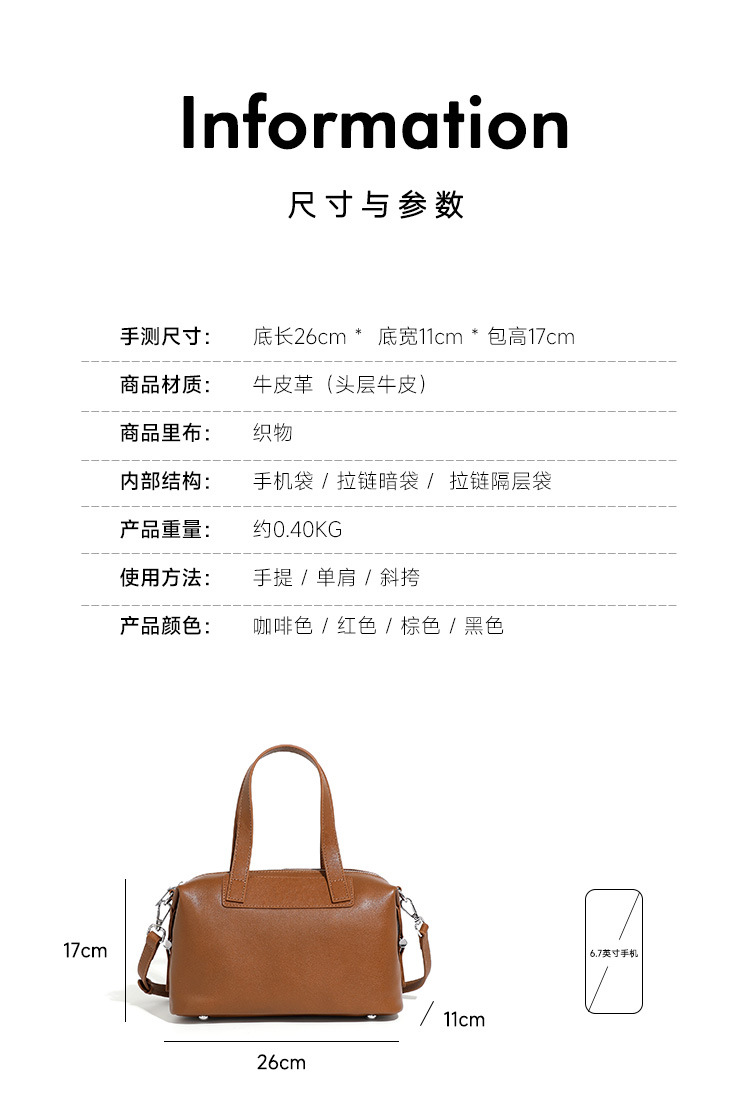 Túi xách tay dành cho nữ, được làm hoàn toàn từ chất liệu da bò mềm mại, mang đến cảm giác dễ chịu khi sử dụng. Kiểu dáng Boston cổ điển pha chút hoài niệm, tạo vẻ đẹp linh hoạt và có thể phối hợp cùng nhiều trang phục. Sản phẩm có qu xách và dây đeo dài để mang trên v hoặc khoác chéo, tiện lợi cho những hoạt động thường ngày. Bạn có thể dùng để đựng các vật dụng cá nhân khi đi làm, đi chơi hay dạo phố. | Tên sản phẩm: Túi Xách Nữ Chất Liệu Da Bò Phục Cổ Cổ Điển - Túi Ví Nữ | Mã sản phẩm: A6942 - Giá: 1.140.000đ | Mã nhà sản xuất: GUDEA-G04Hình ảnh sản phẩm