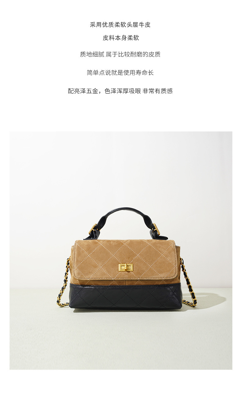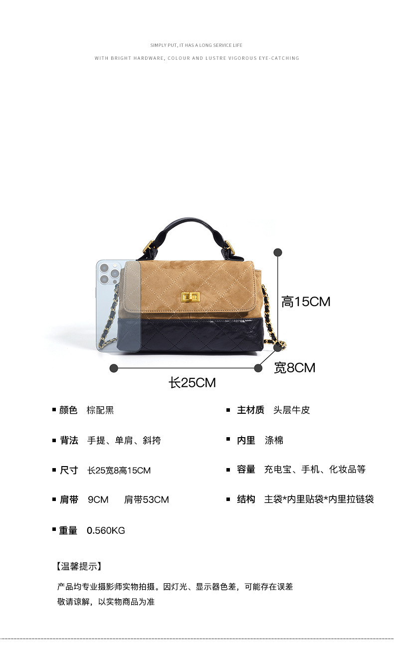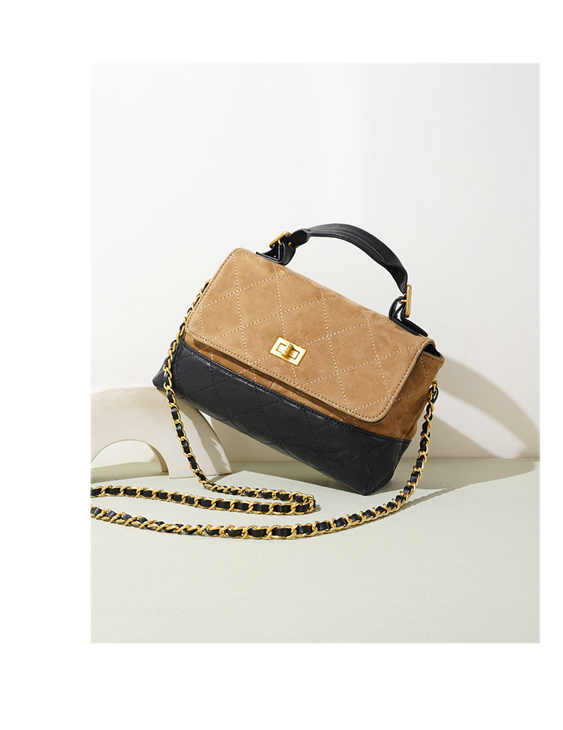 Túi xách tay và đeo chéo thiết kế mới, kết hợp hai màu da thật tinh tế. Dây đeo chuỗi mắt xích tạo điểm nhấn nổi bật, phong cách cổ điển nhẹ nhàng. Kiểu dáng nhỏ gọn, tiện lợi cho việc mang đi làm hoặc dạo phố. Có thể đeo làm túi xách tay hoặc khoác chéo người linh hoạt. Bên trong đủ rộng để đựng ví, điện thoại và các vật dụng cá nhân cần thiết hàng ngày. | Tên sản phẩm: Túi Xách Nữ Chất Liệu Da Bò Phục Cổ Cổ Điển - Túi Ví Nữ | Mã sản phẩm: A7631 - Giá: 1.920.000đ | Mã nhà sản xuất: GUDEA-G05Hình ảnh sản phẩm
